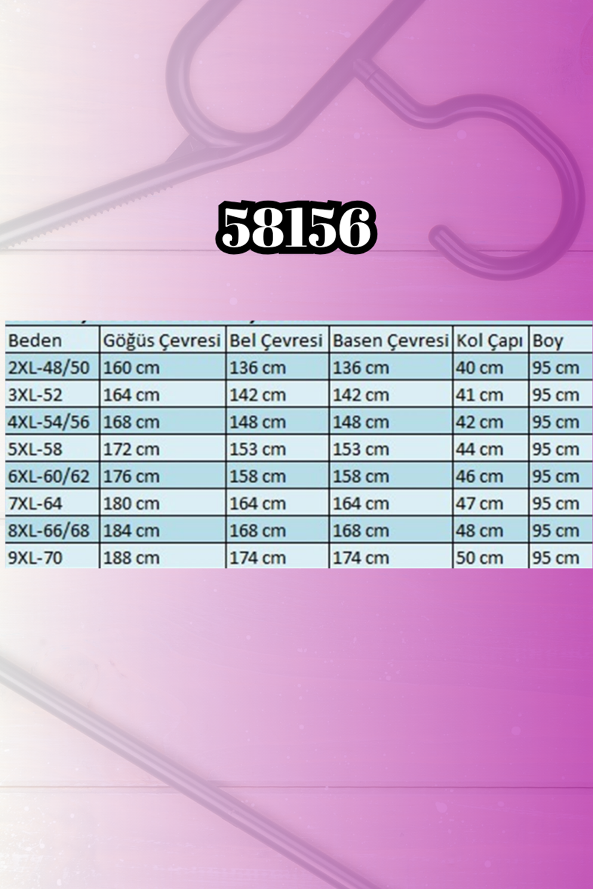 BEL GENİŞLİĞİ :88 cm GÖĞÜS GENİŞLİĞİ :103 cm BASEN :116 cm