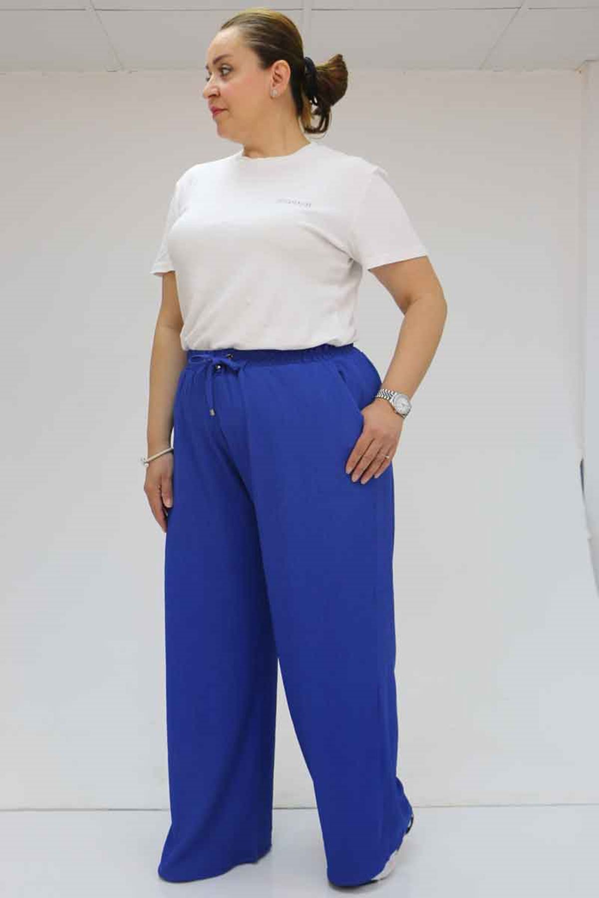39012 Büyük Beden Bolpaça Bürümcük Pantolon - Saks