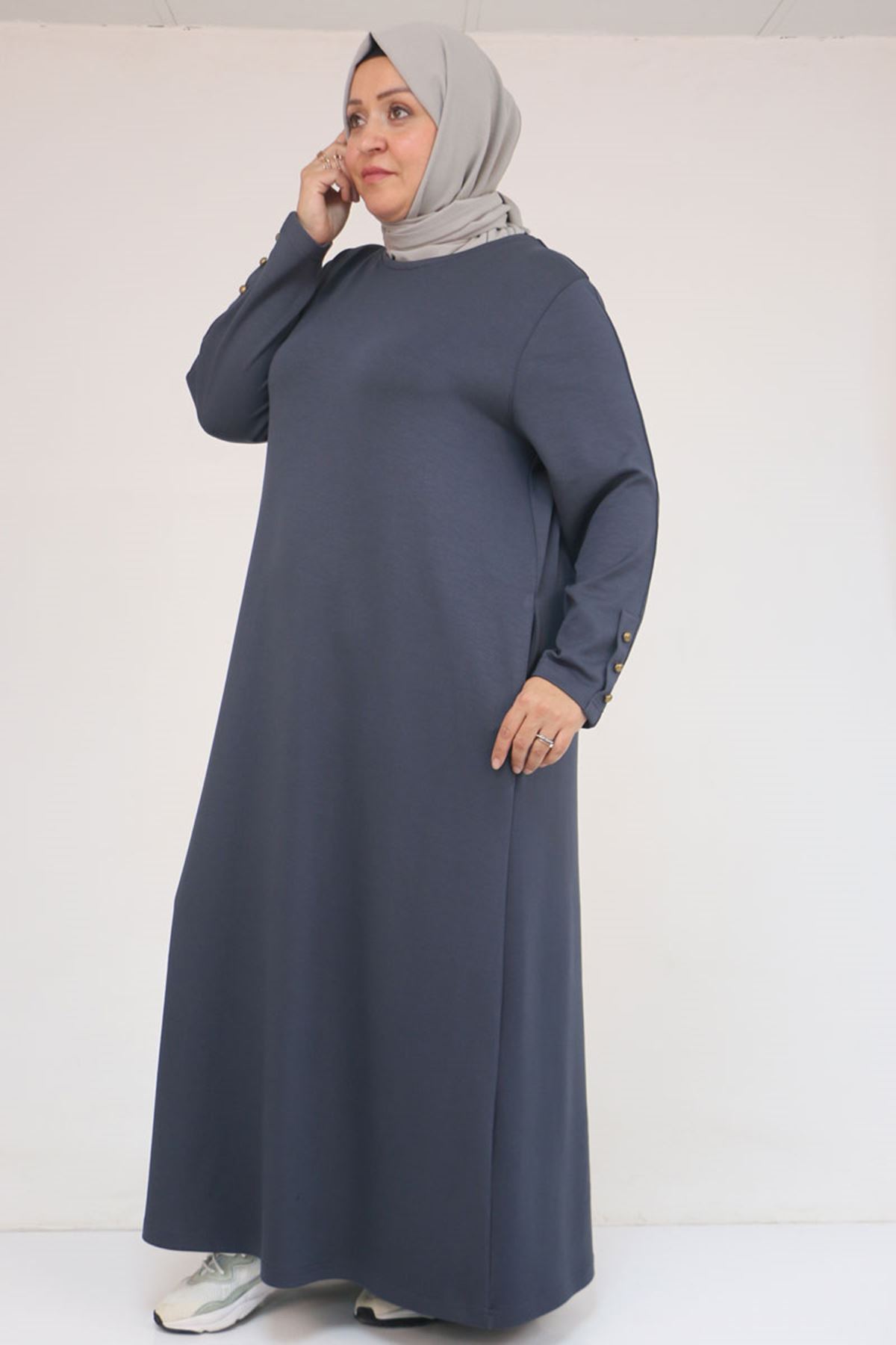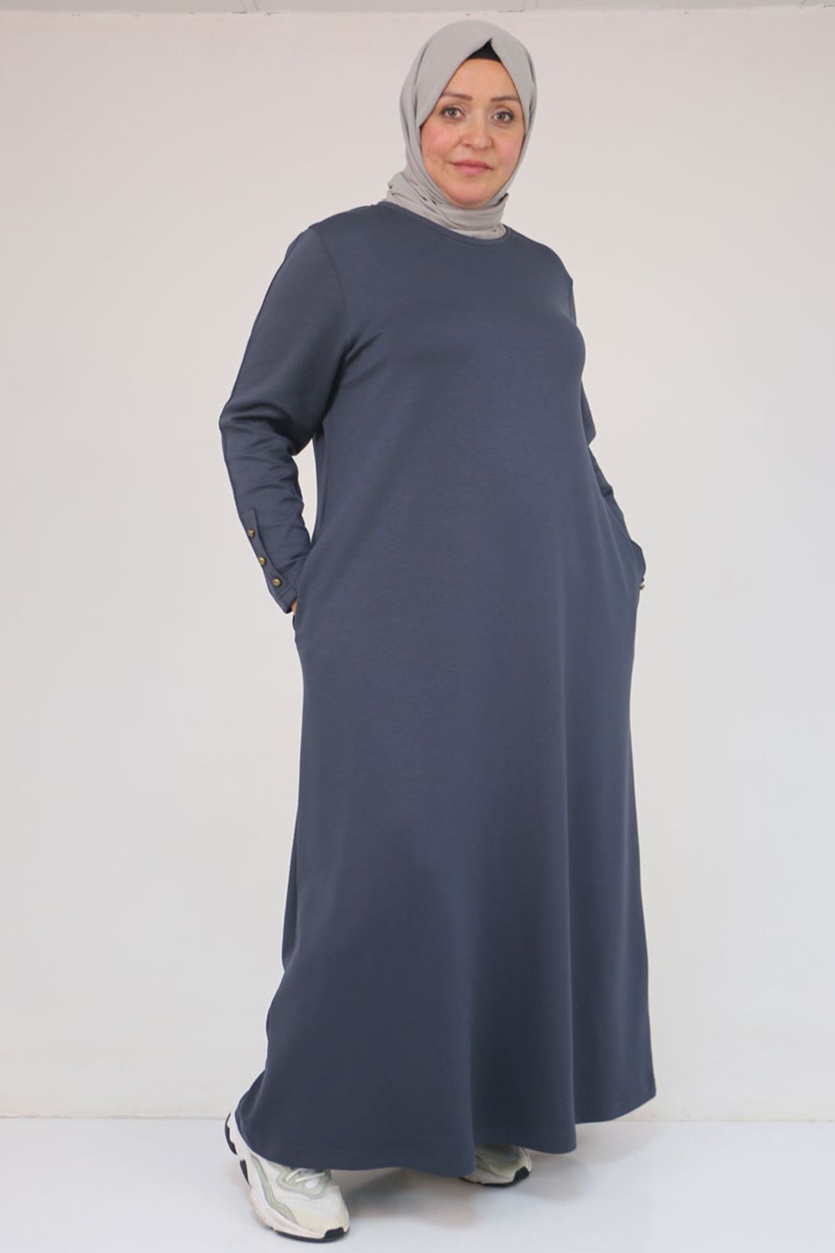 42031 Büyük Beden Cepli Patlı Modal Elbise - Antrasit
