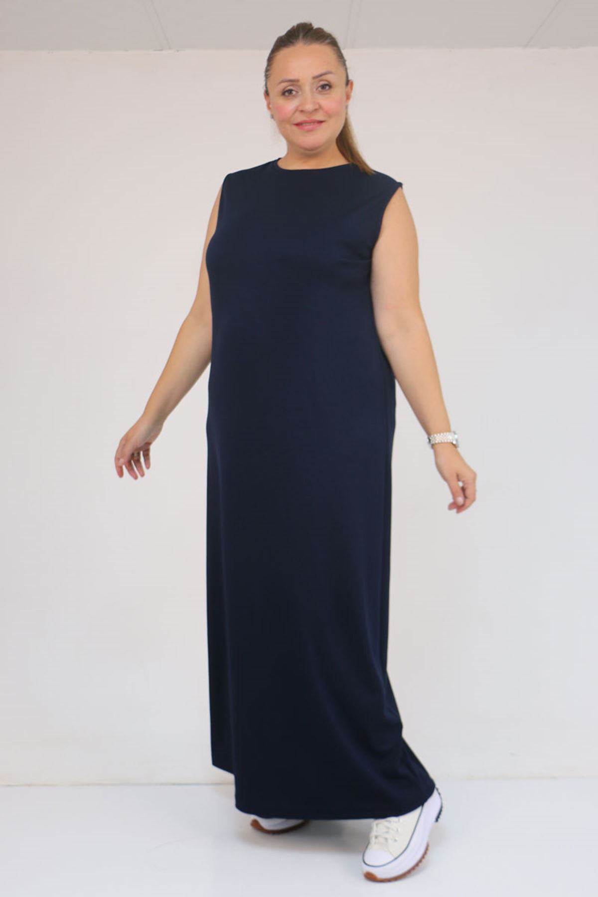 42050 Büyük Beden Modal Kolsuz Elbise - Lacivert
