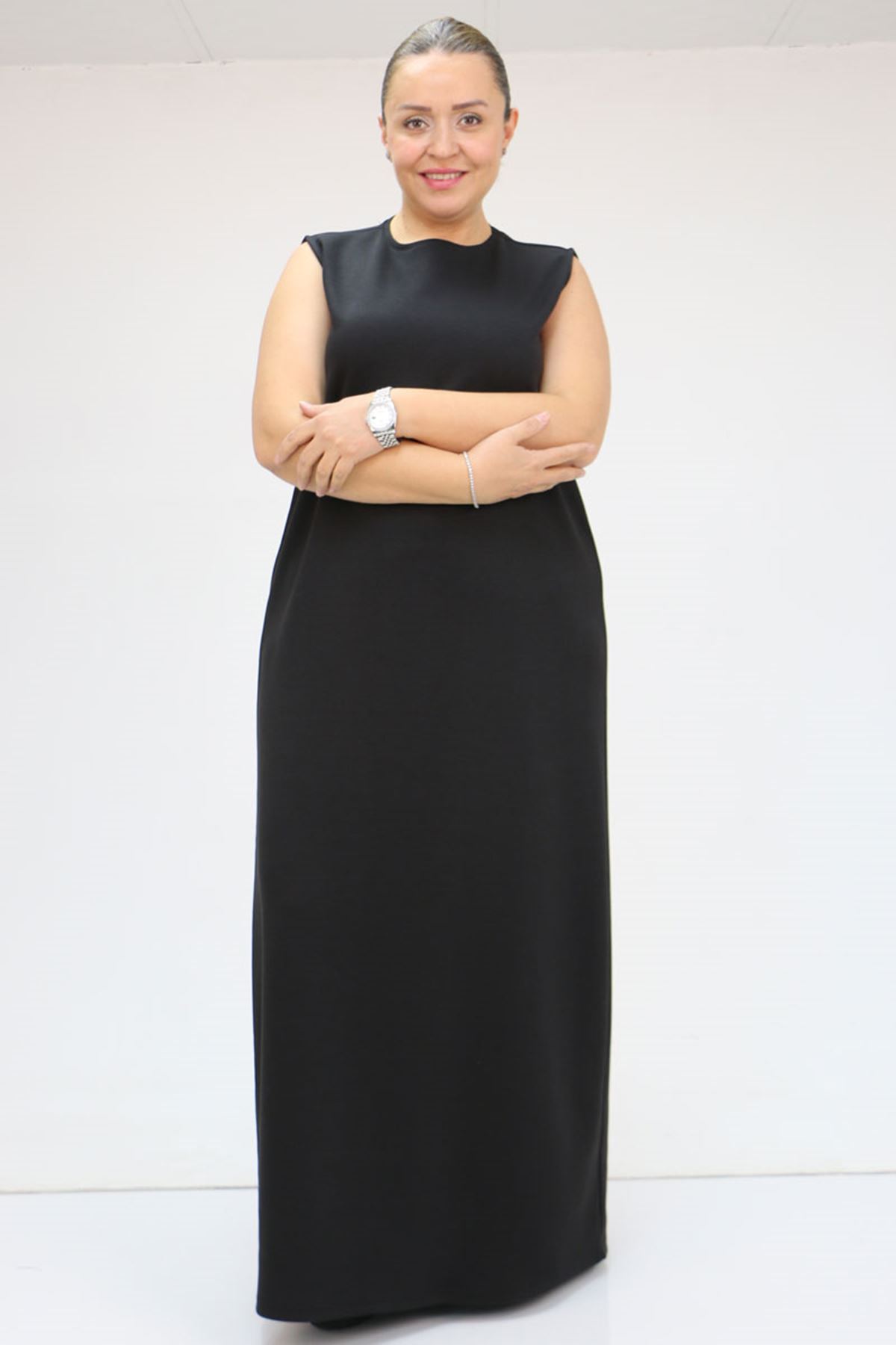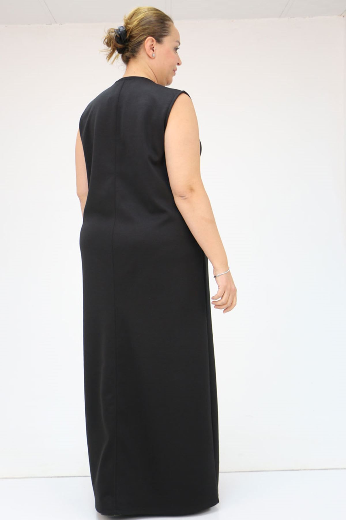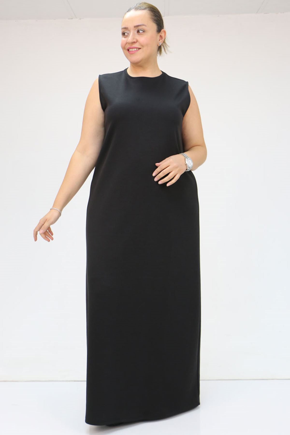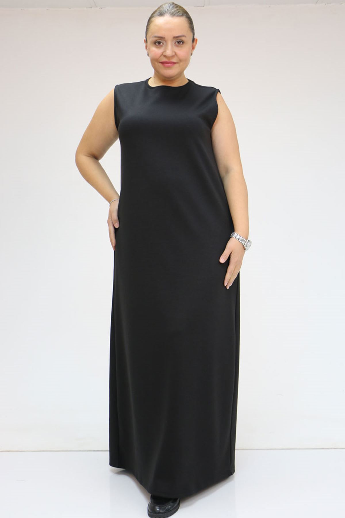 42050 Büyük Beden ModalKolsuz Elbise - Siyah