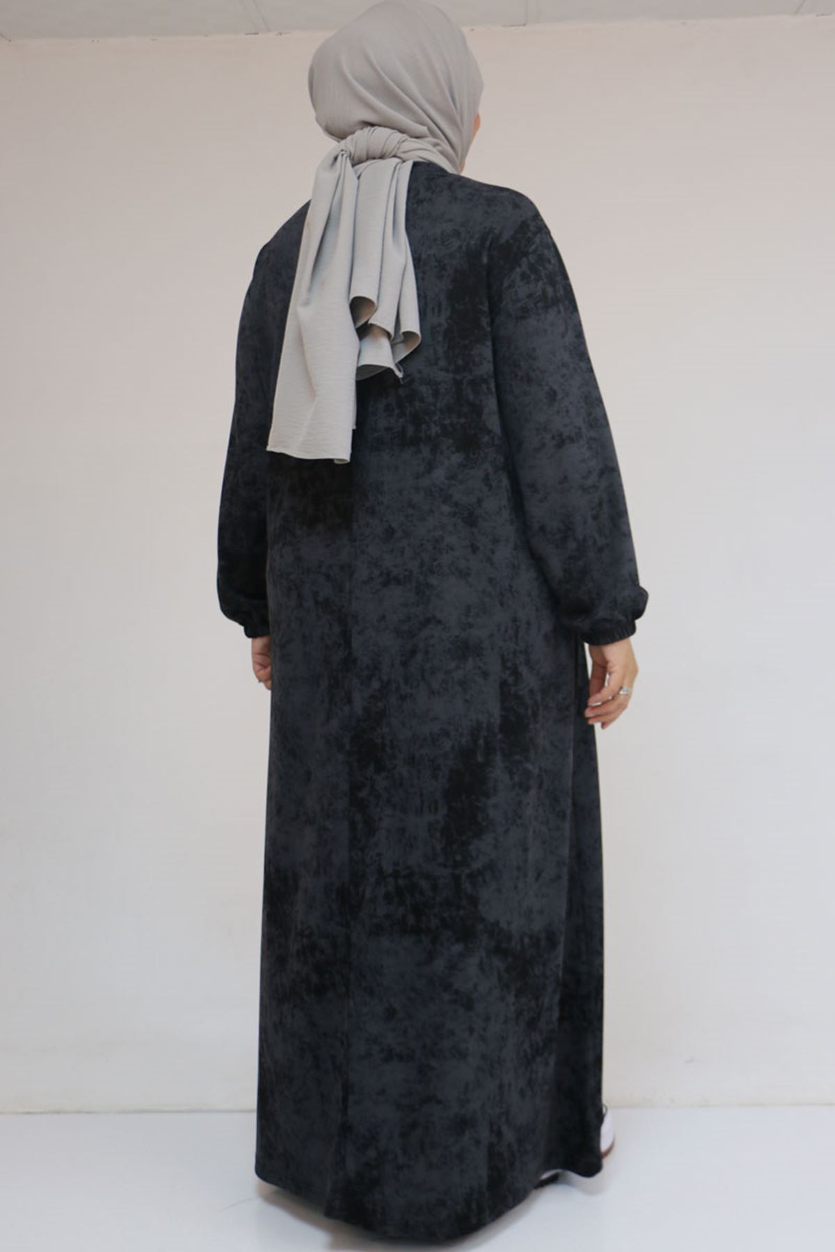 52030 Büyük Beden Kolu Lastikli Modal Elbise - Batik Siyah