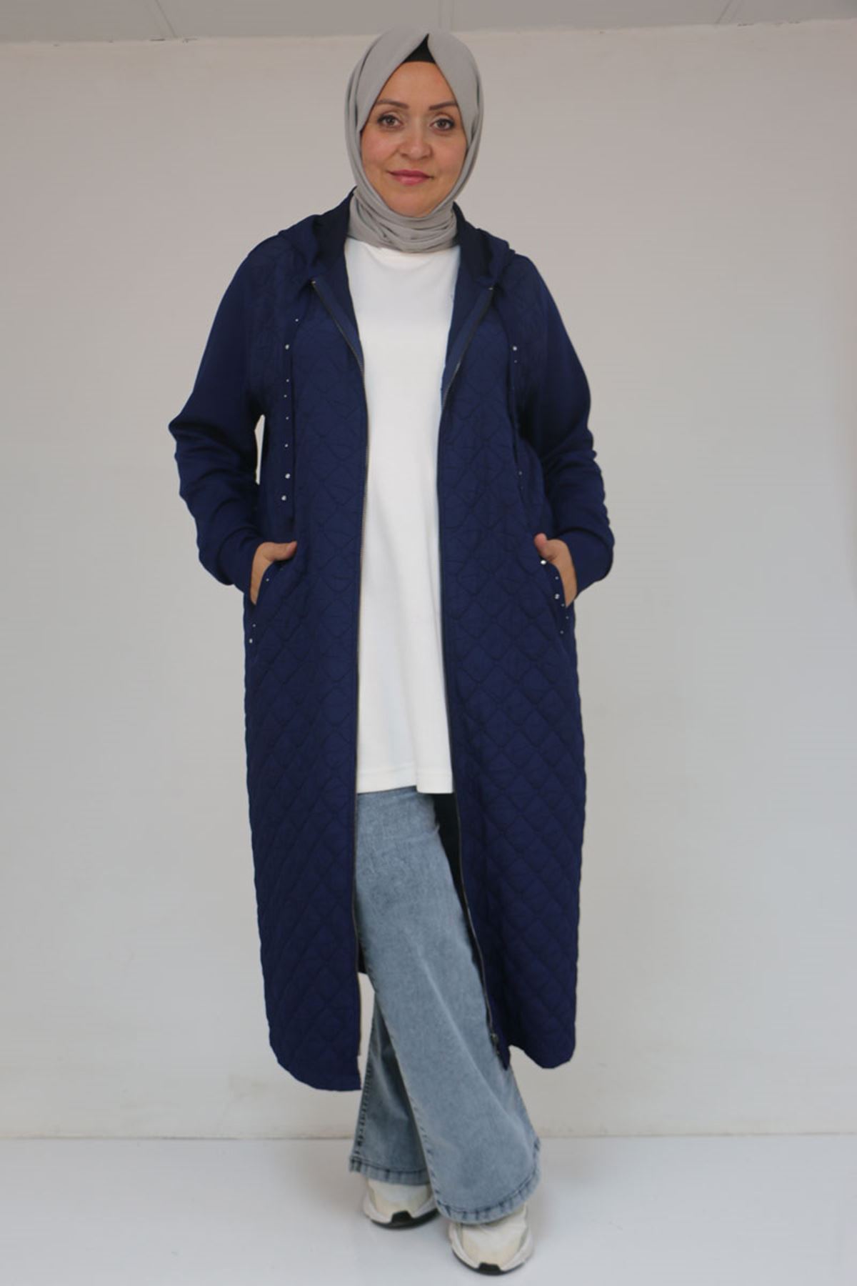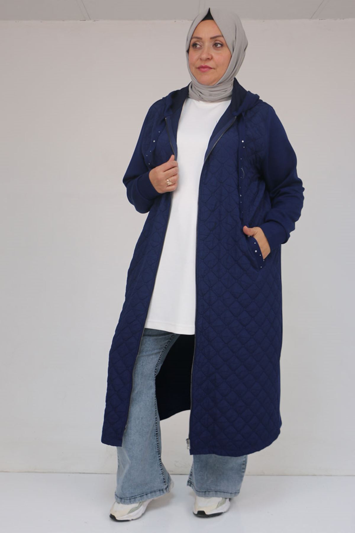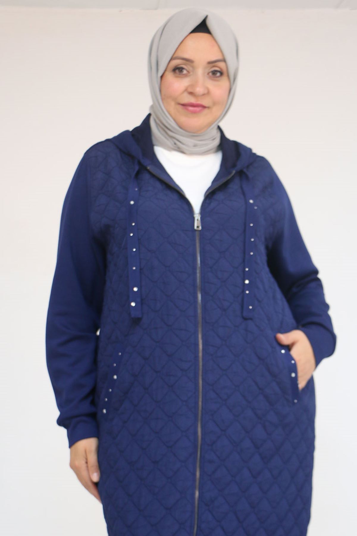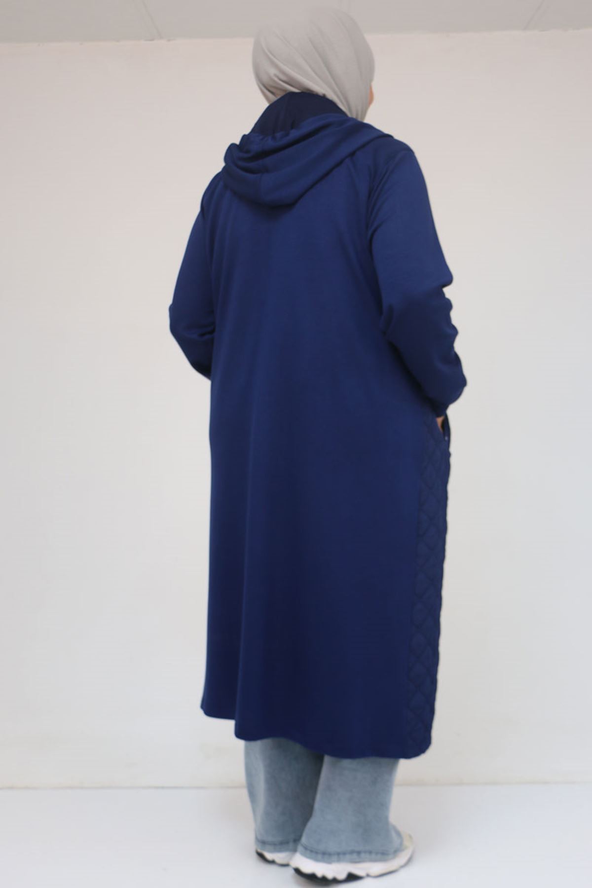 53041 Büyük Beden Modal - Kapitone Kombinli Kap - İndigo