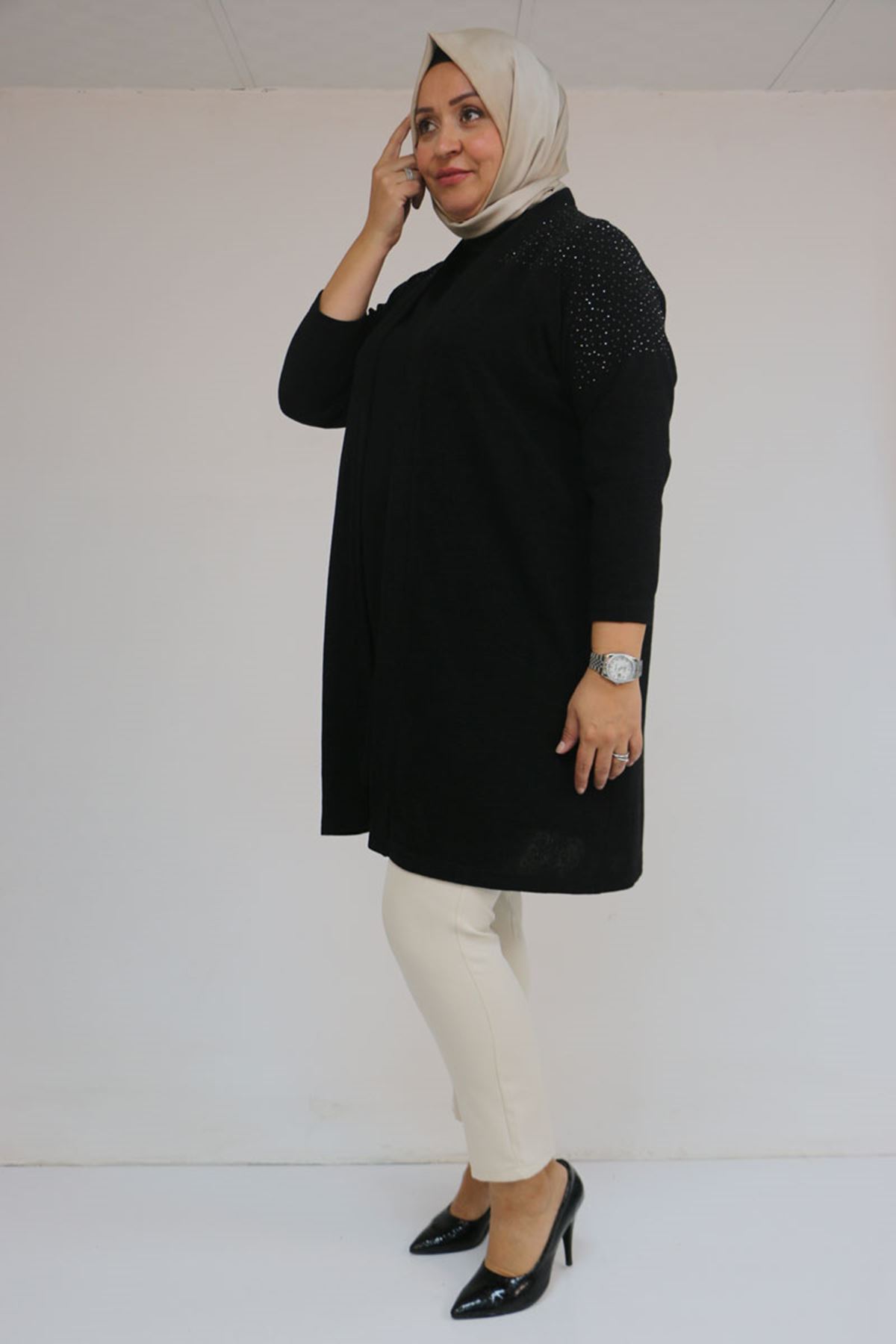 53047 Büyük Beden Omzu Taş Detaylı Mir Ceket - Siyah