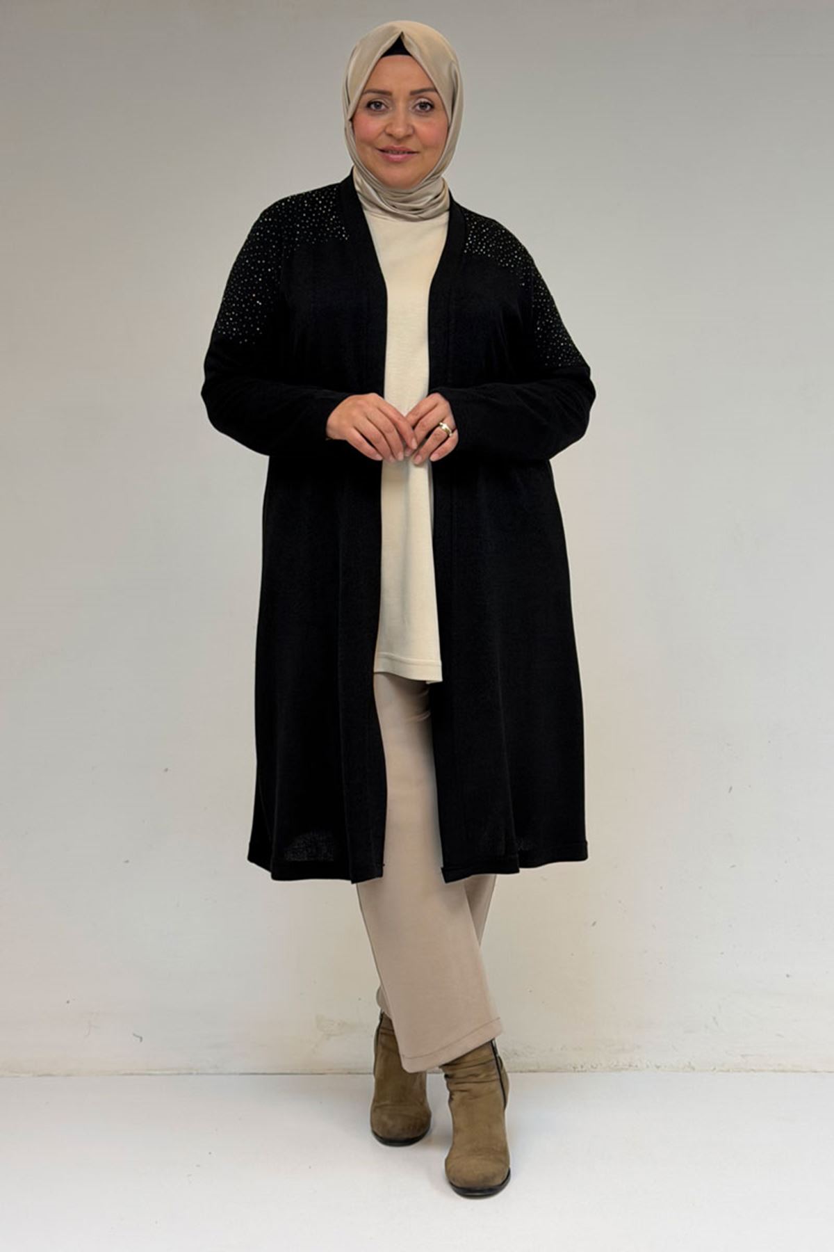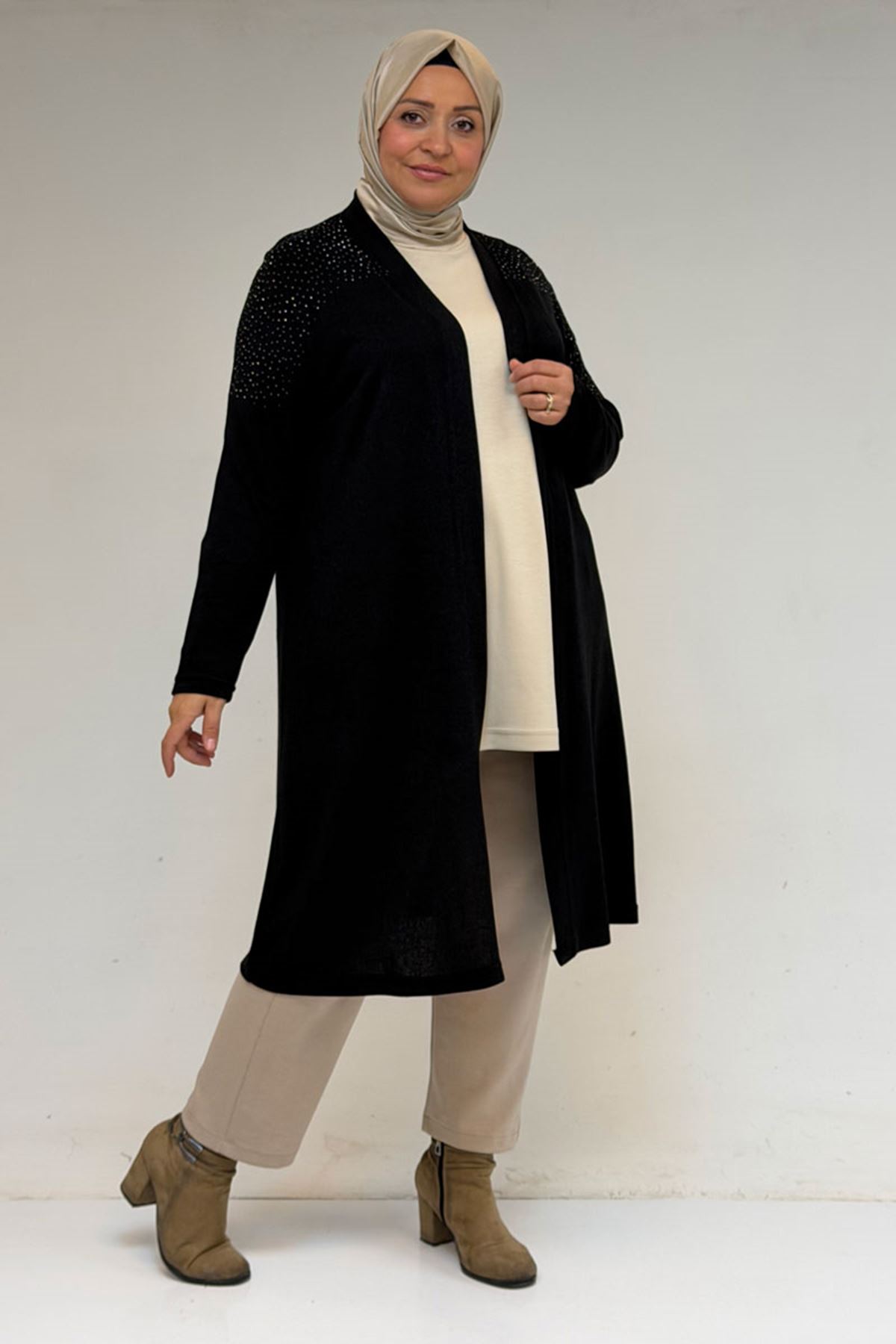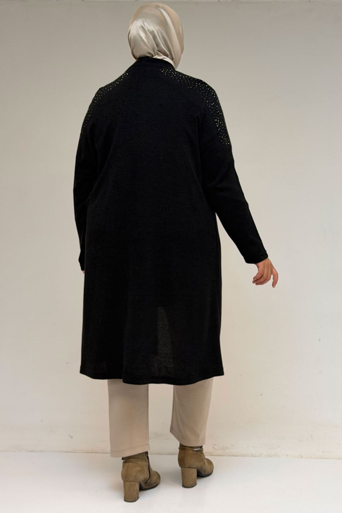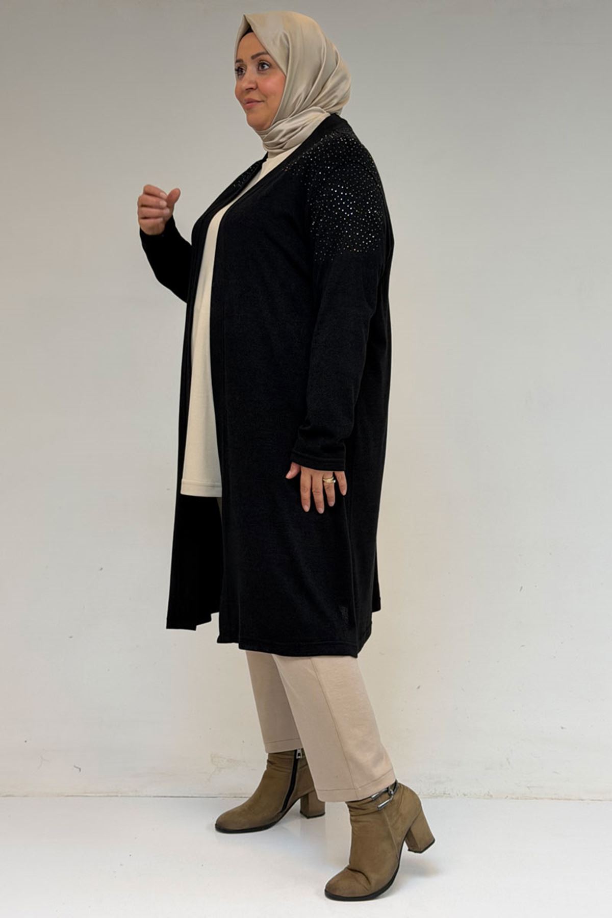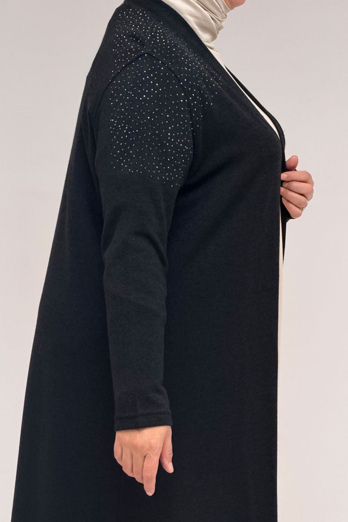 53047 Büyük Beden Omzu Taş Detaylı Mir Ceket - Siyah