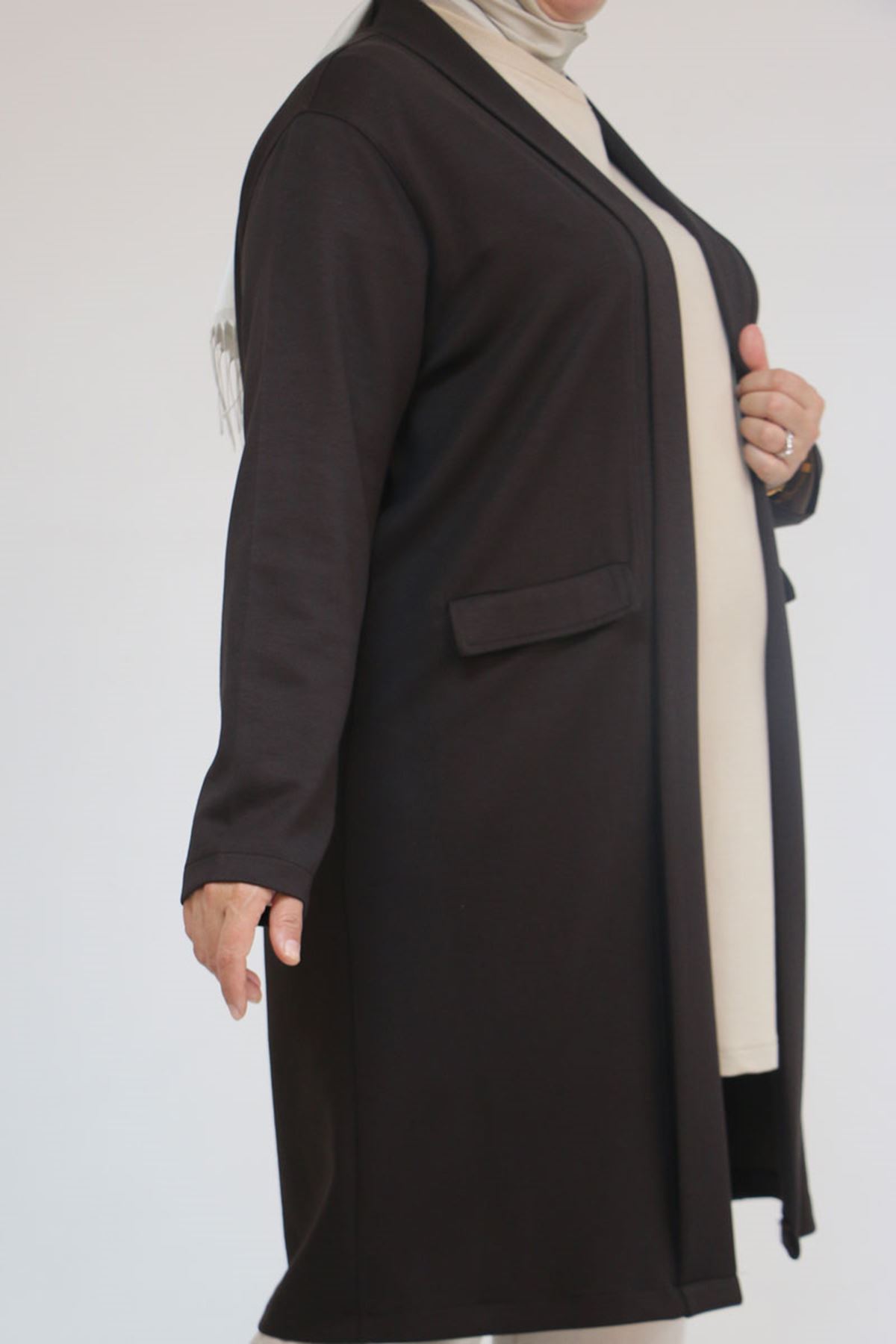 53048 Büyük Beden Cepli Uzun Modal Ceket - Kahve