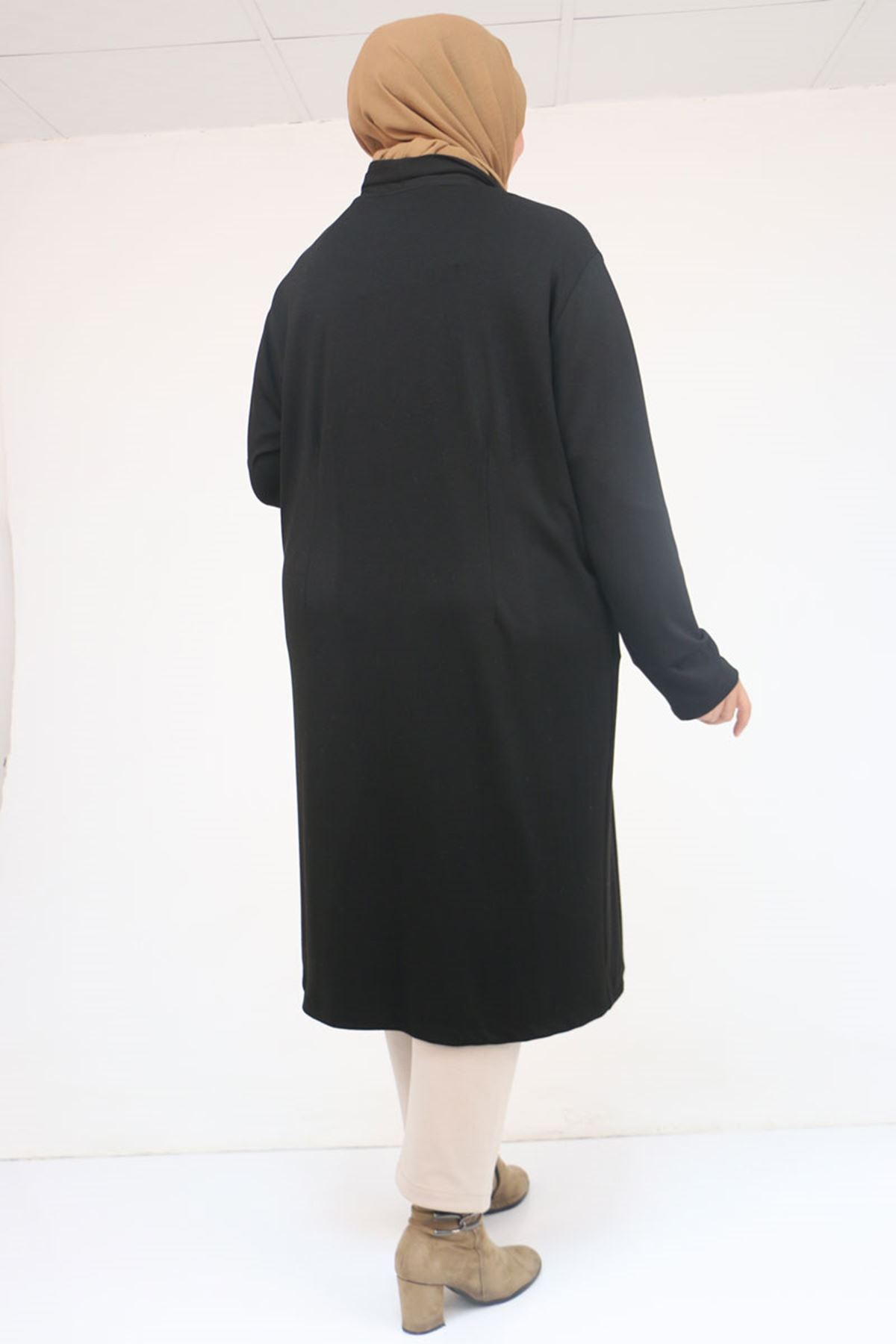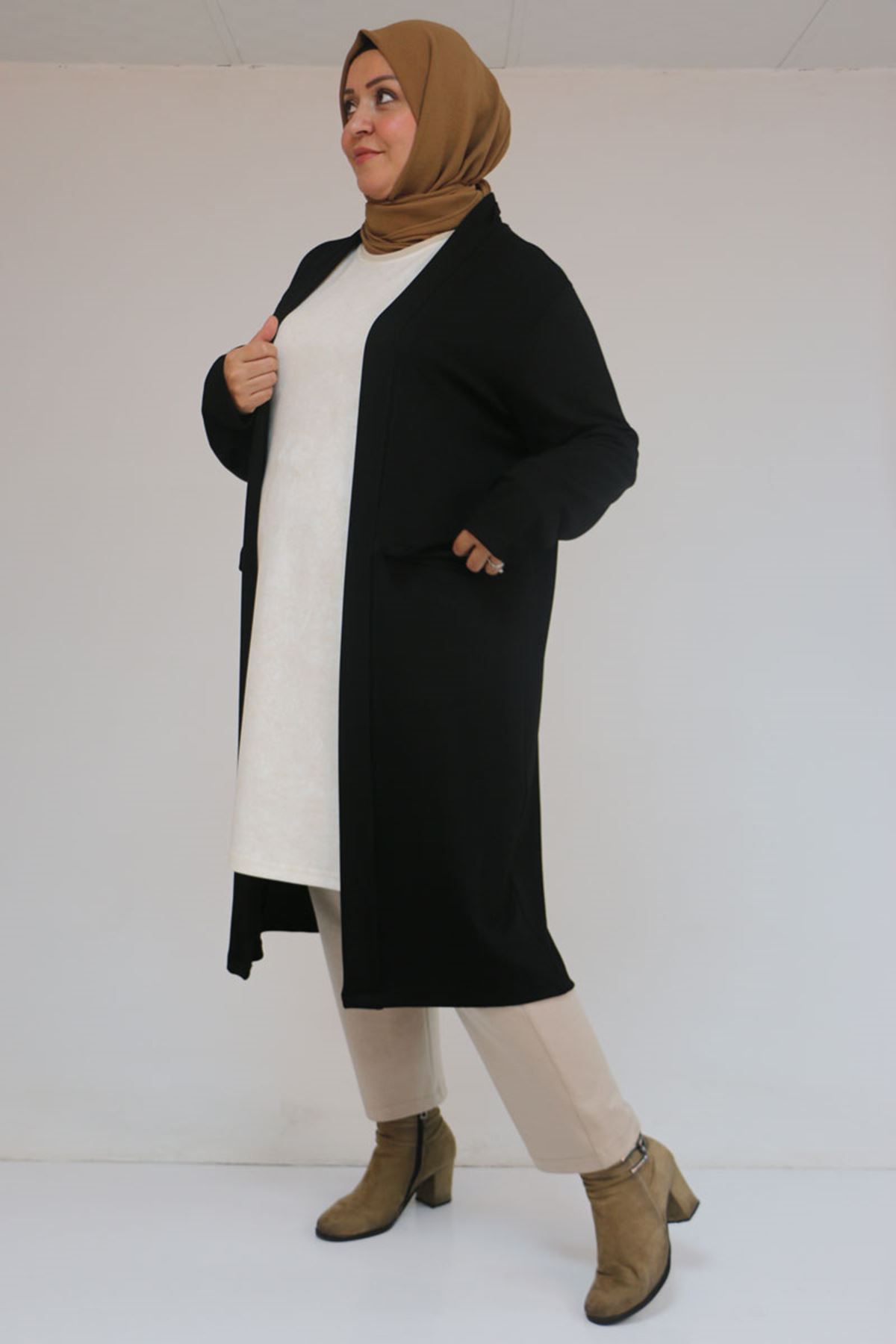 53048 Büyük Beden Cepli Uzun Modal Ceket - Siyah