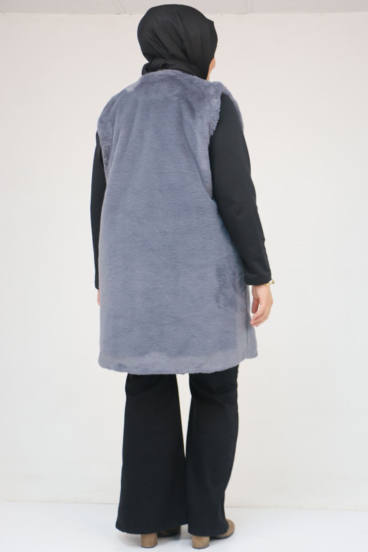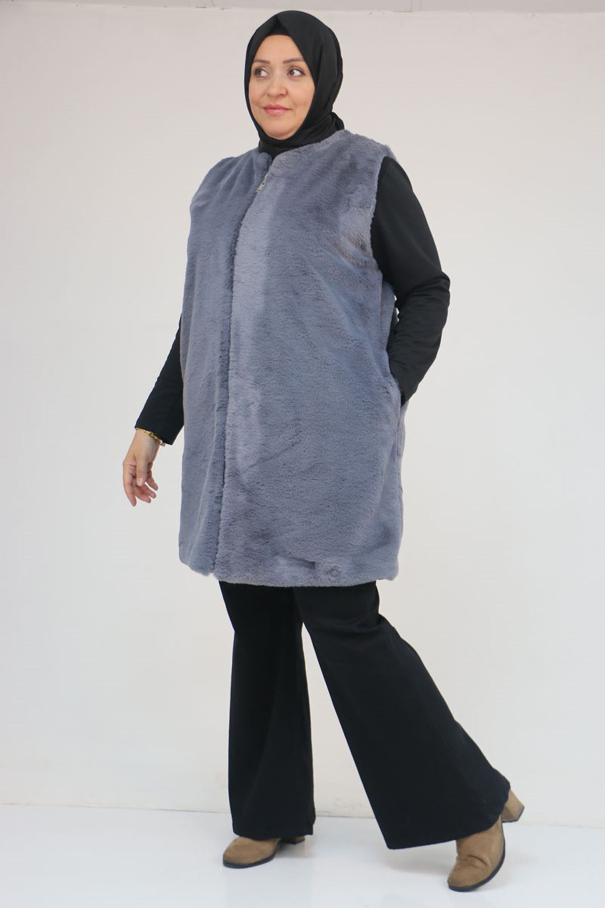 54013 Büyük Beden Cepli Rabbit Astarlı Yelek - Gri