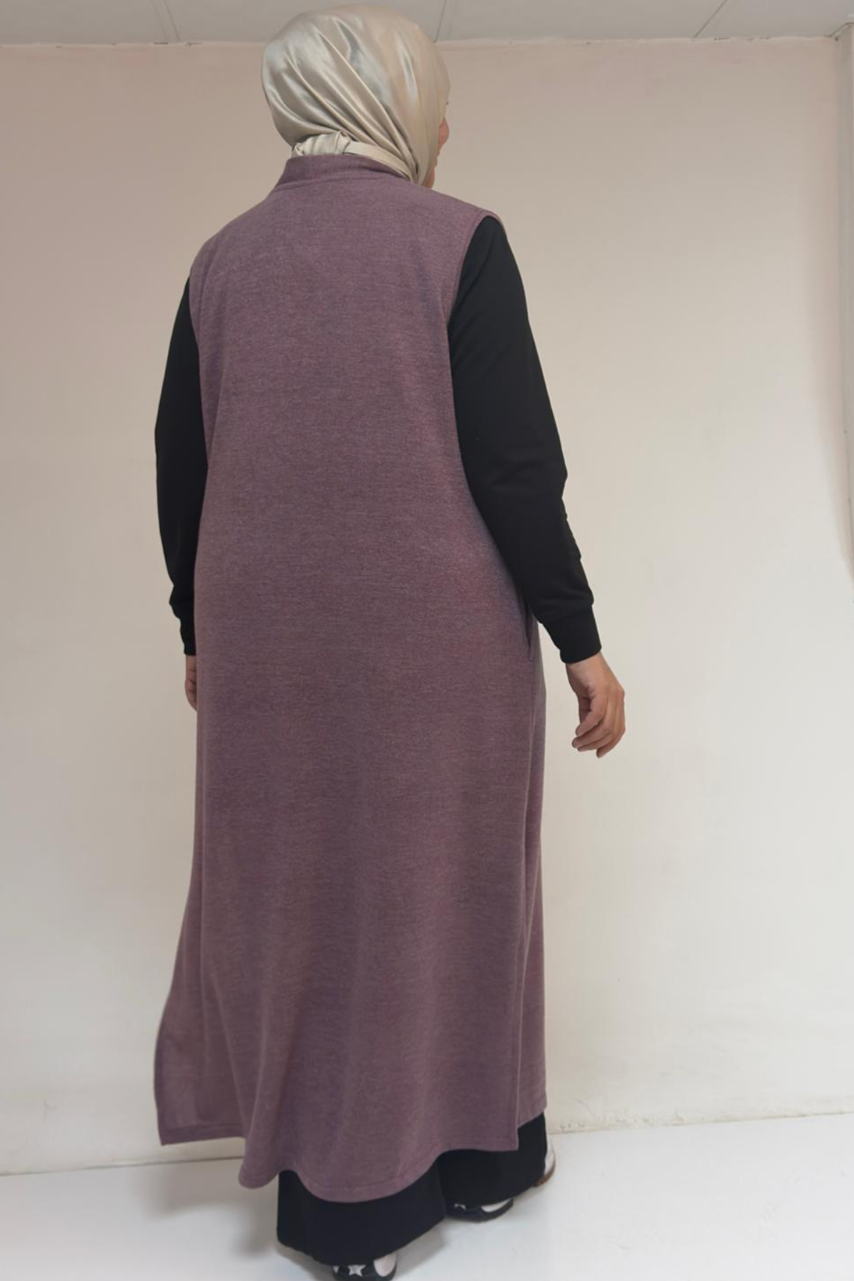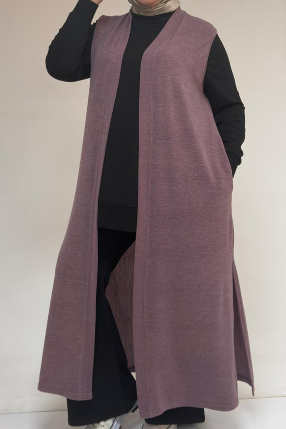 54015 Büyük Beden Yırtmaçlı Cepli Uzun Mir Yelek - Gül Kurusu