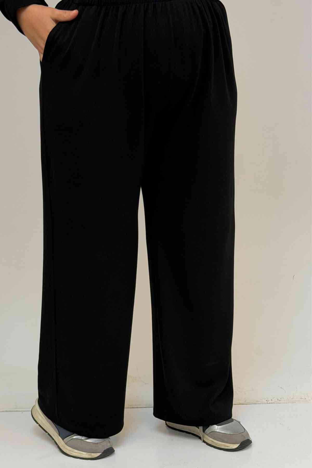 57038 Büyük Beden Erkek Yaka Düğme Detaylı Modal Pantolonlu Takım - Siyah