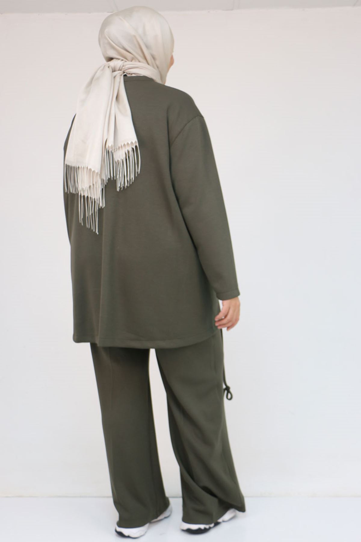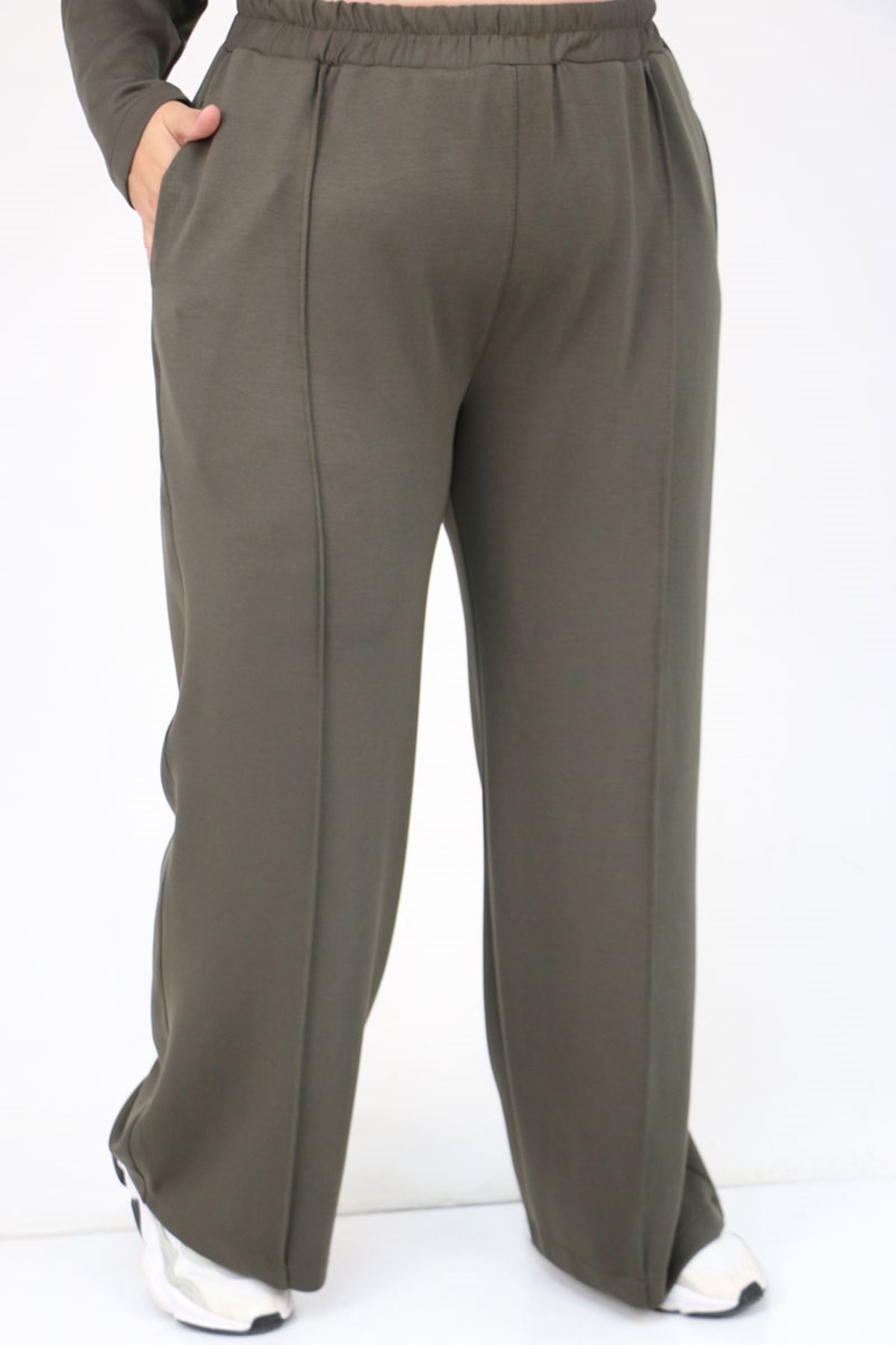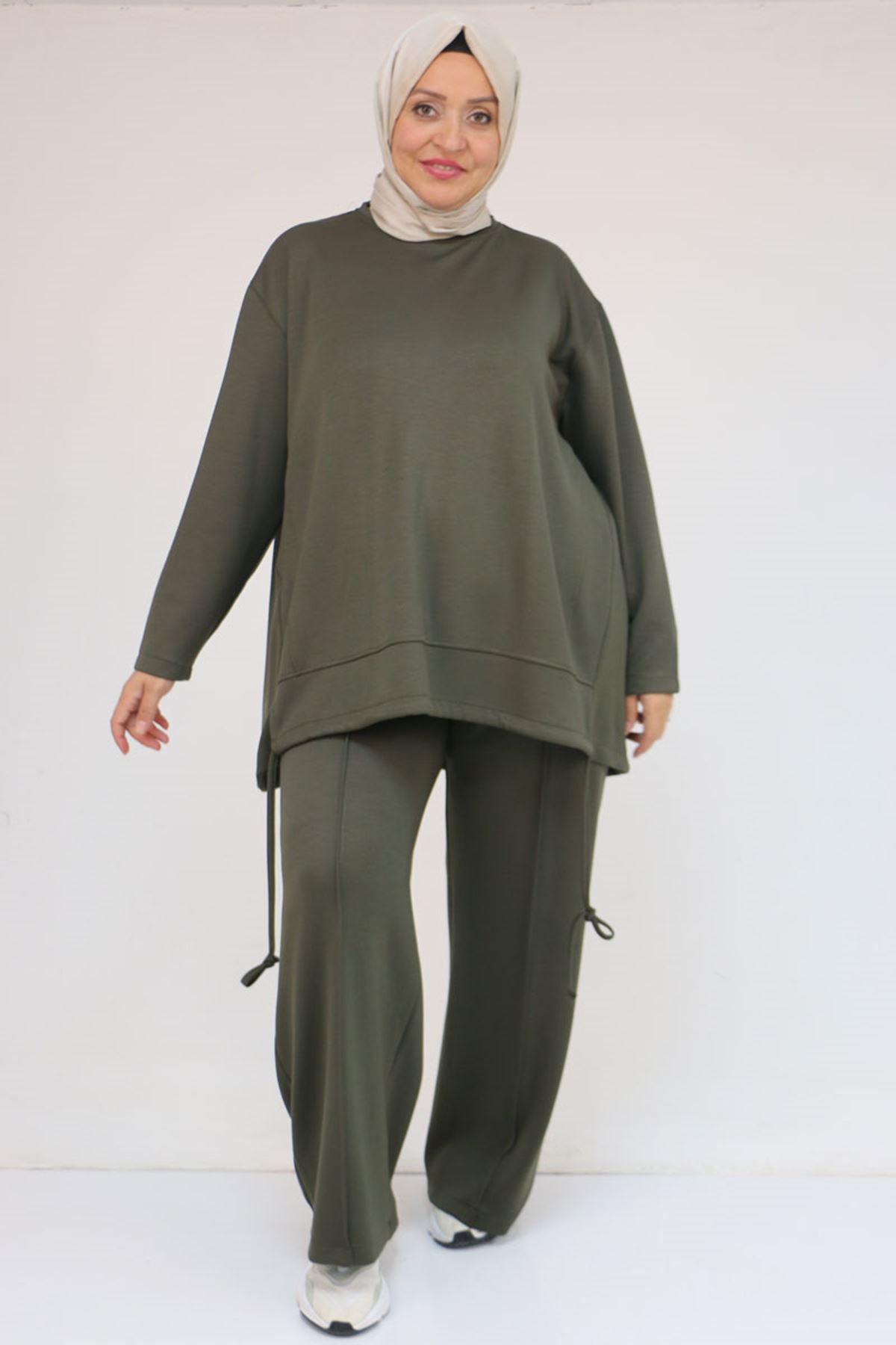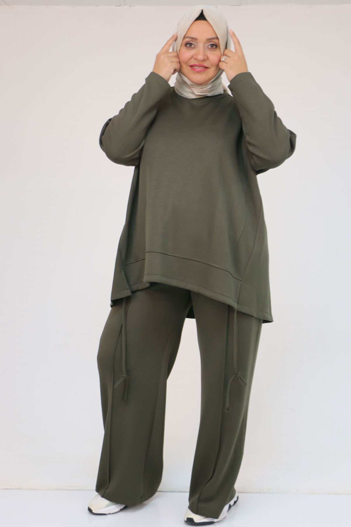 57050 Büyük Beden Etek Ucu Parçalı Modal Pantolonlu Takım - Haki