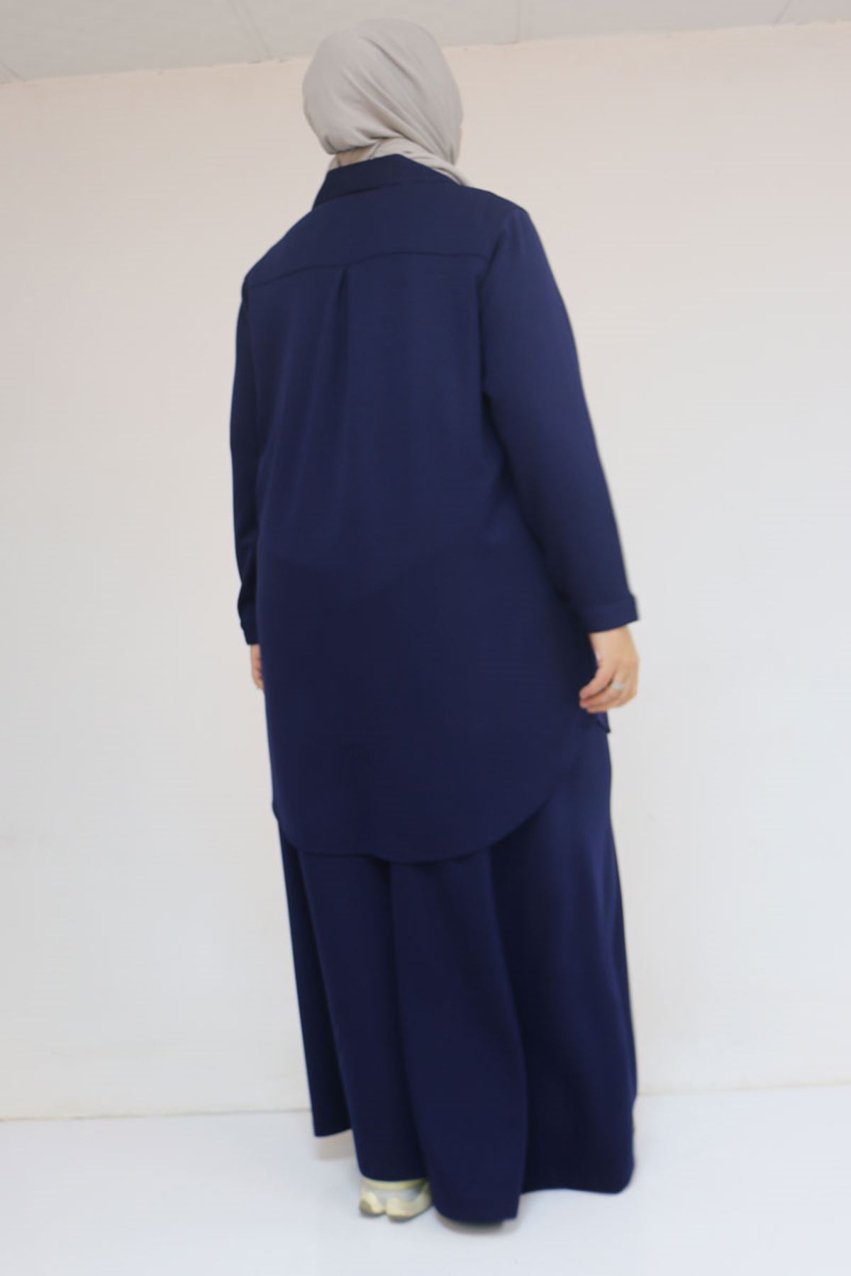57055 Büyük Beden Gömleği Düğmeli Pantolonlu Modal Takım - İndigo