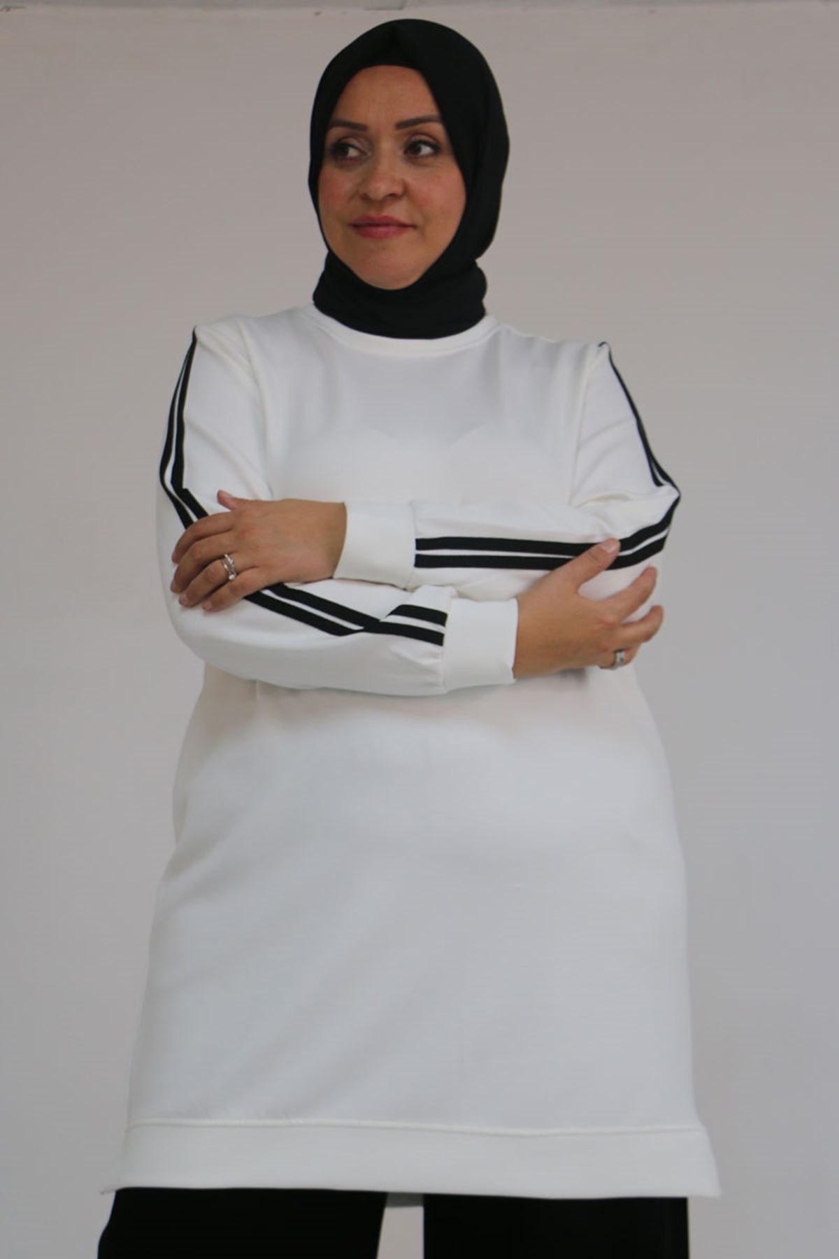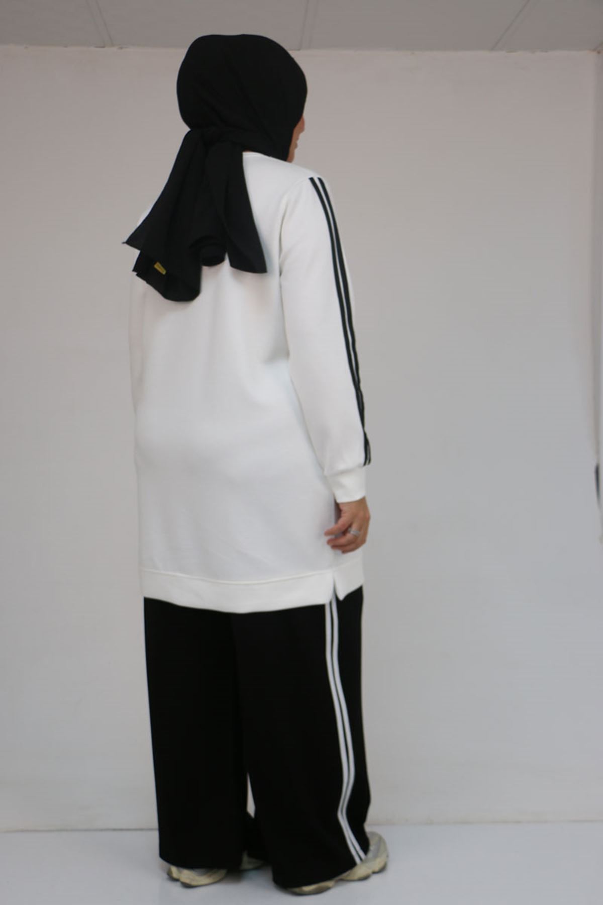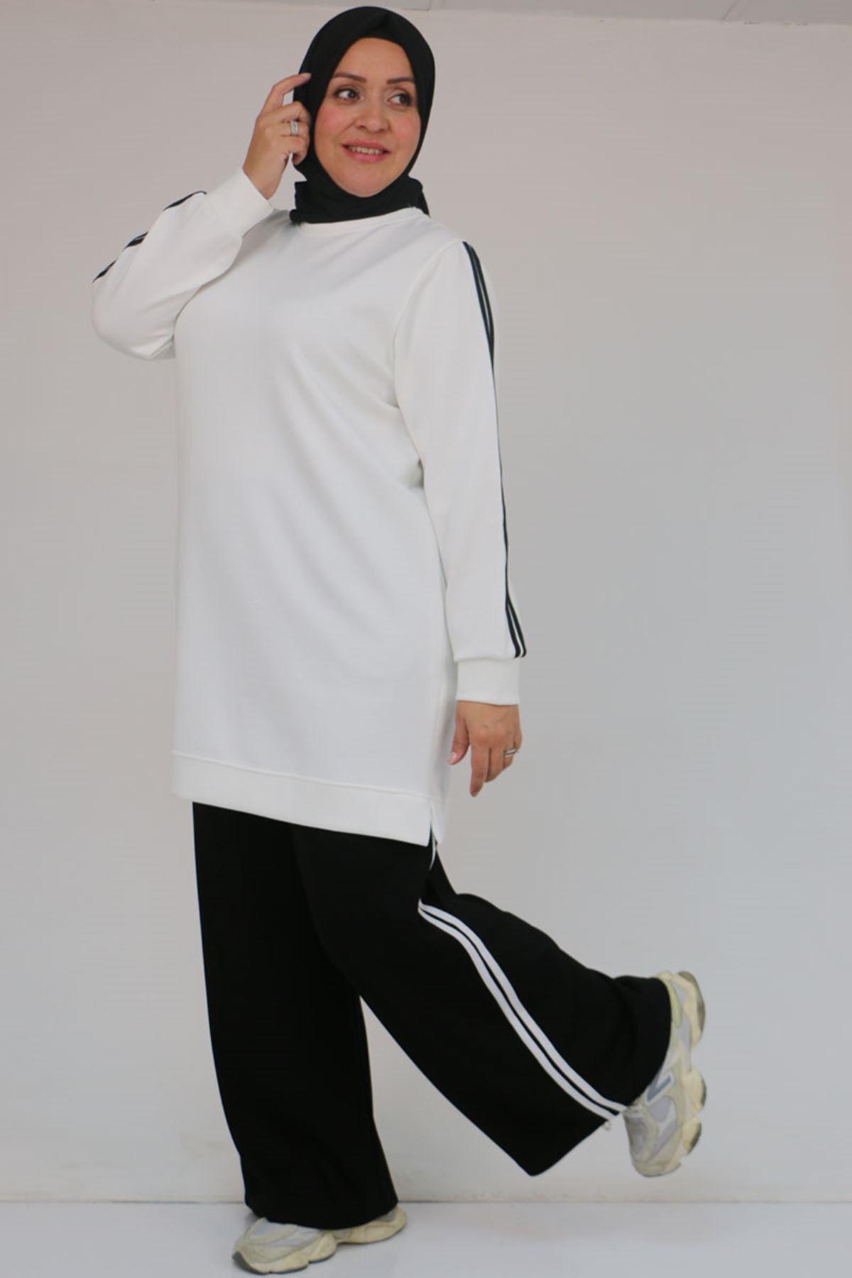 57059 Büyük Beden Alt-Üst Renk Kombinli Modal Pantolonlu Takım - Siyah