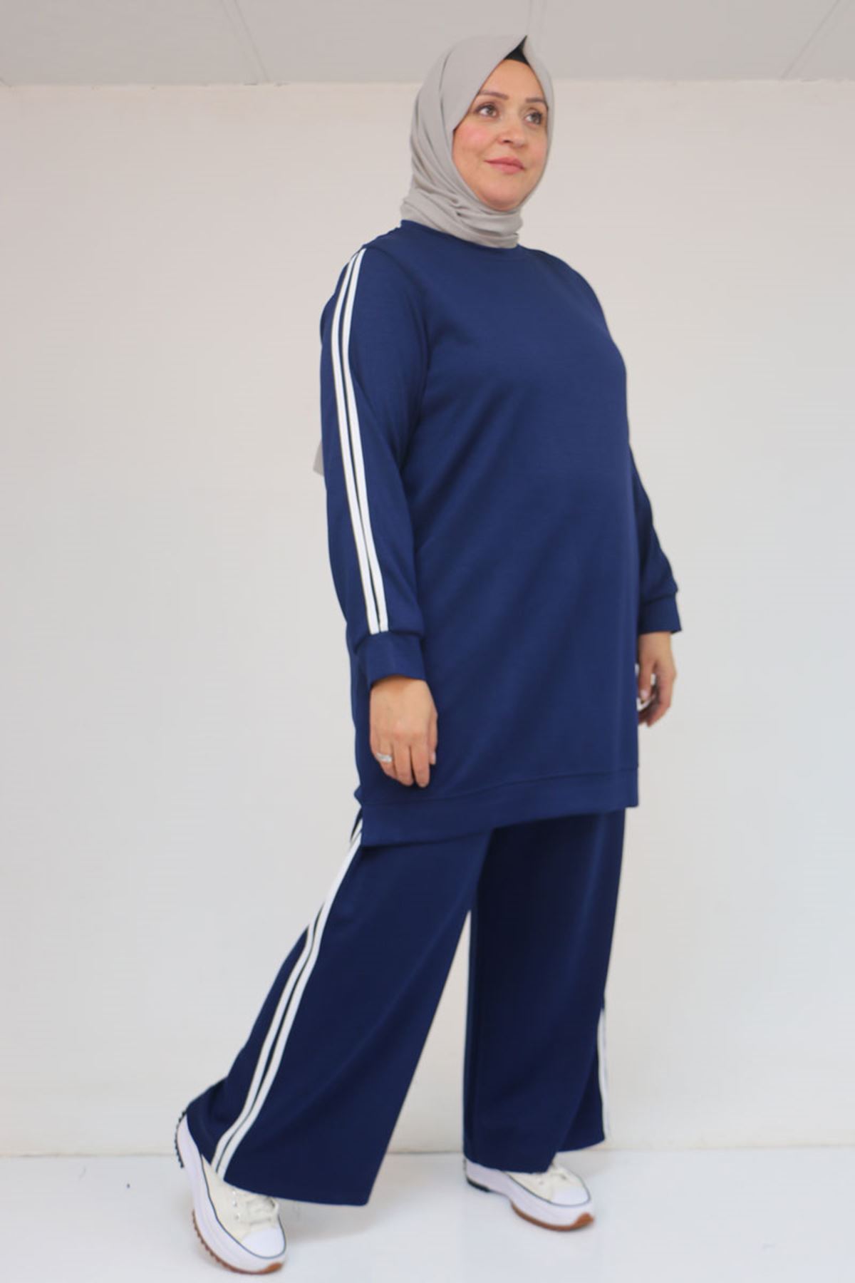 57060 Büyük Beden Omzu Şeritli Modal Pantolonlu Takım - İndigo