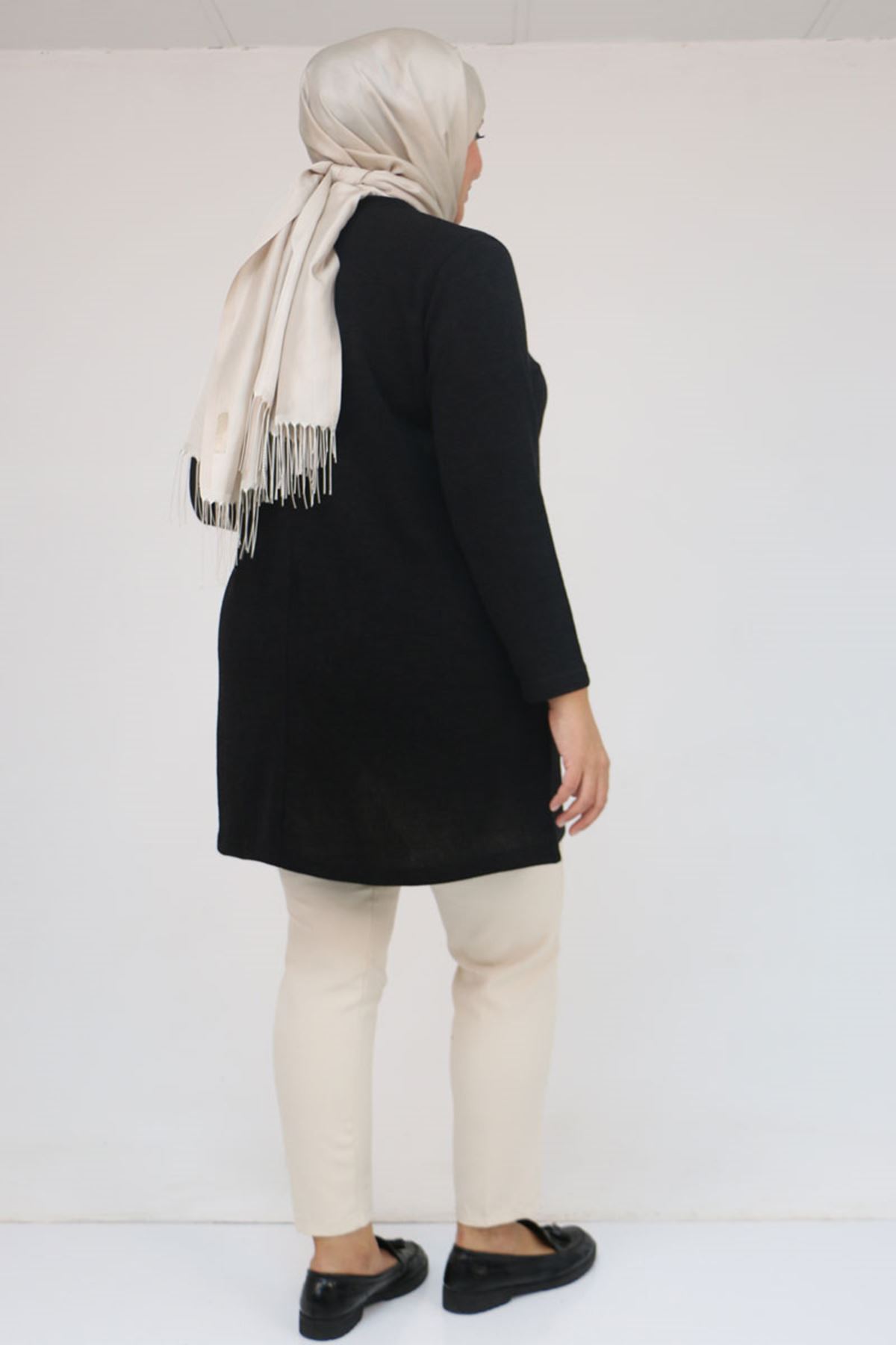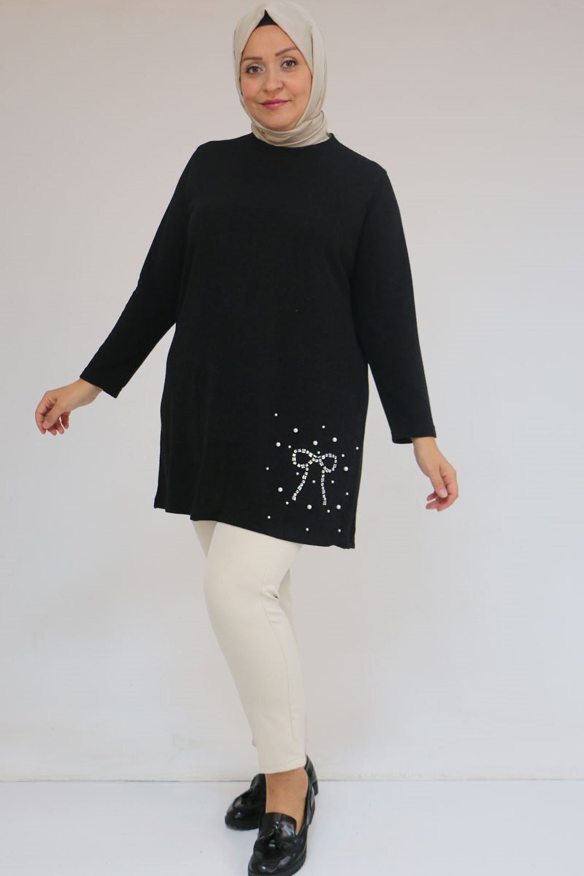 58111 Büyük Beden Önü Taş Detaylı Mir Tunik - Siyah