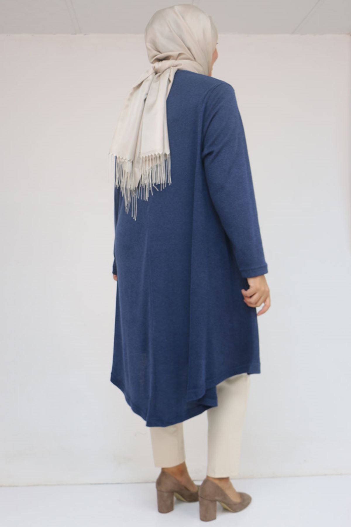 58117 Büyük Beden Taş Detaylı Mevlana Mir Tunik - İndigo