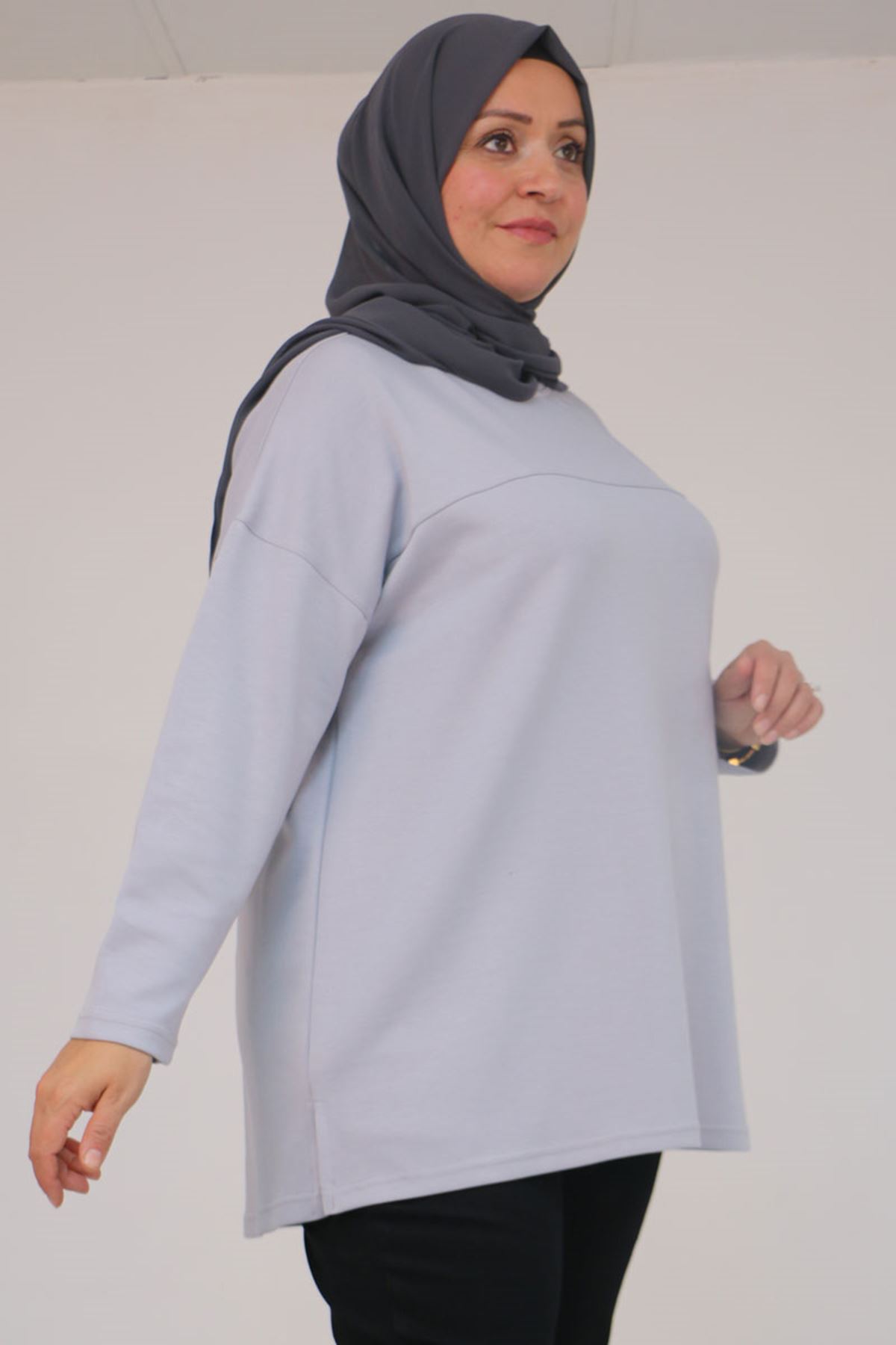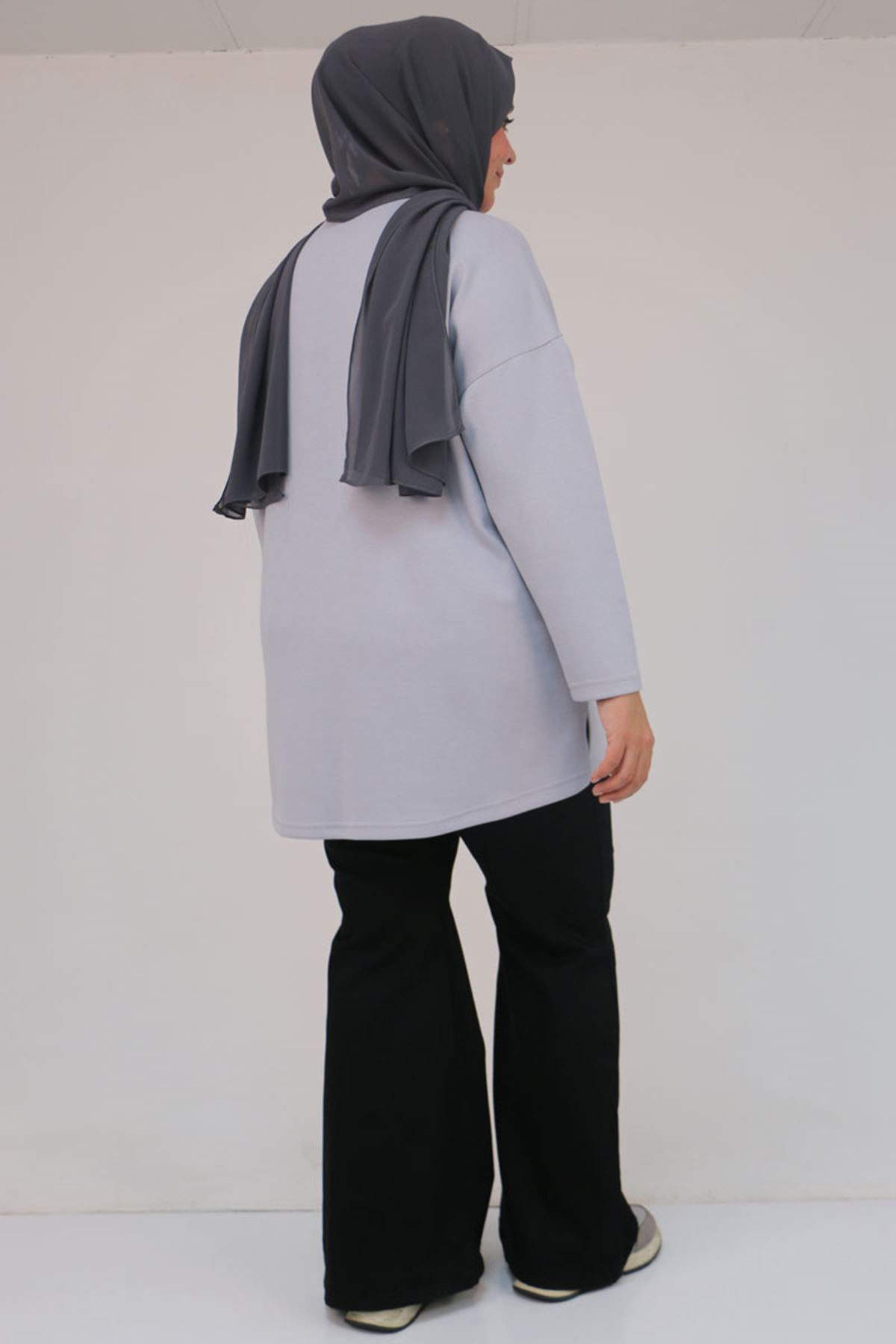 58132 Büyük Beden Önü Çıma Detaylı Yanı Yırtmaçlı Modal Tunik - Gri