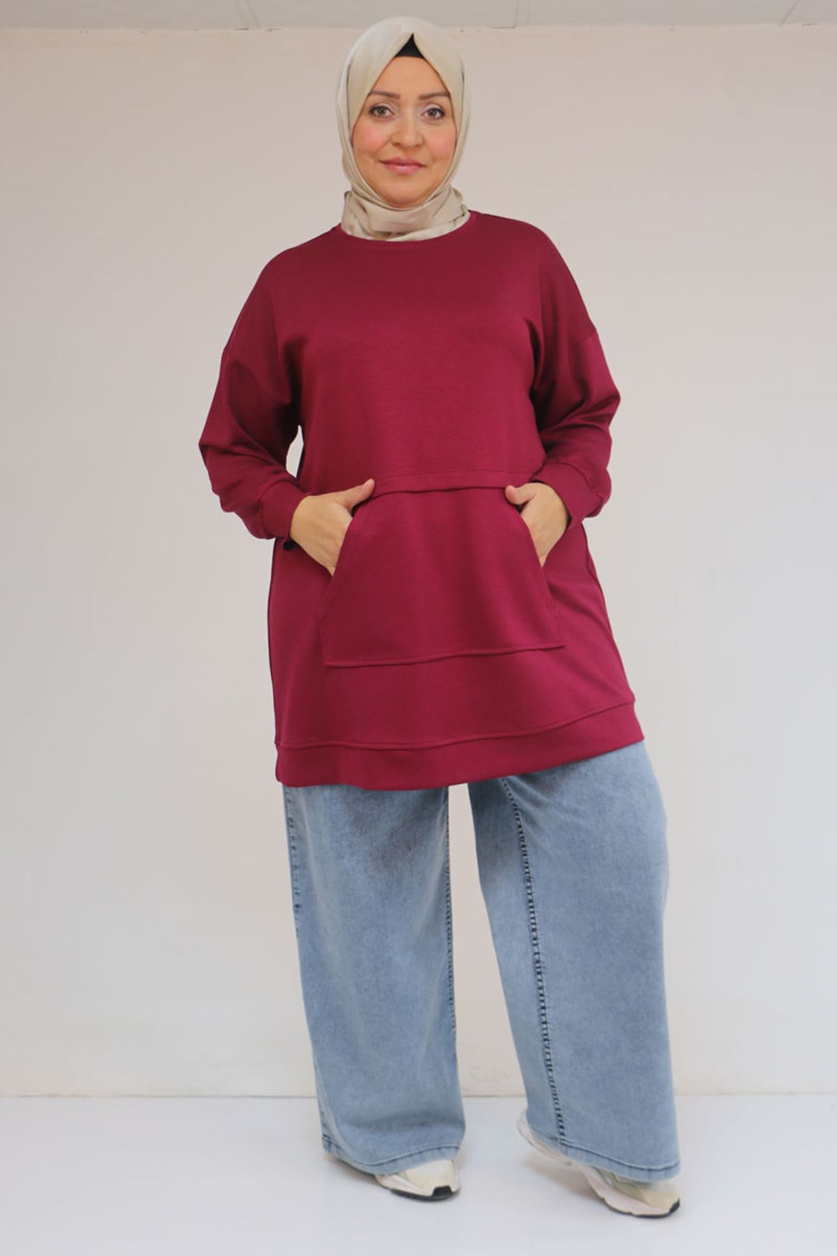 58133 Büyük Beden Kanguru Cepli Modal Tunik - Bordo