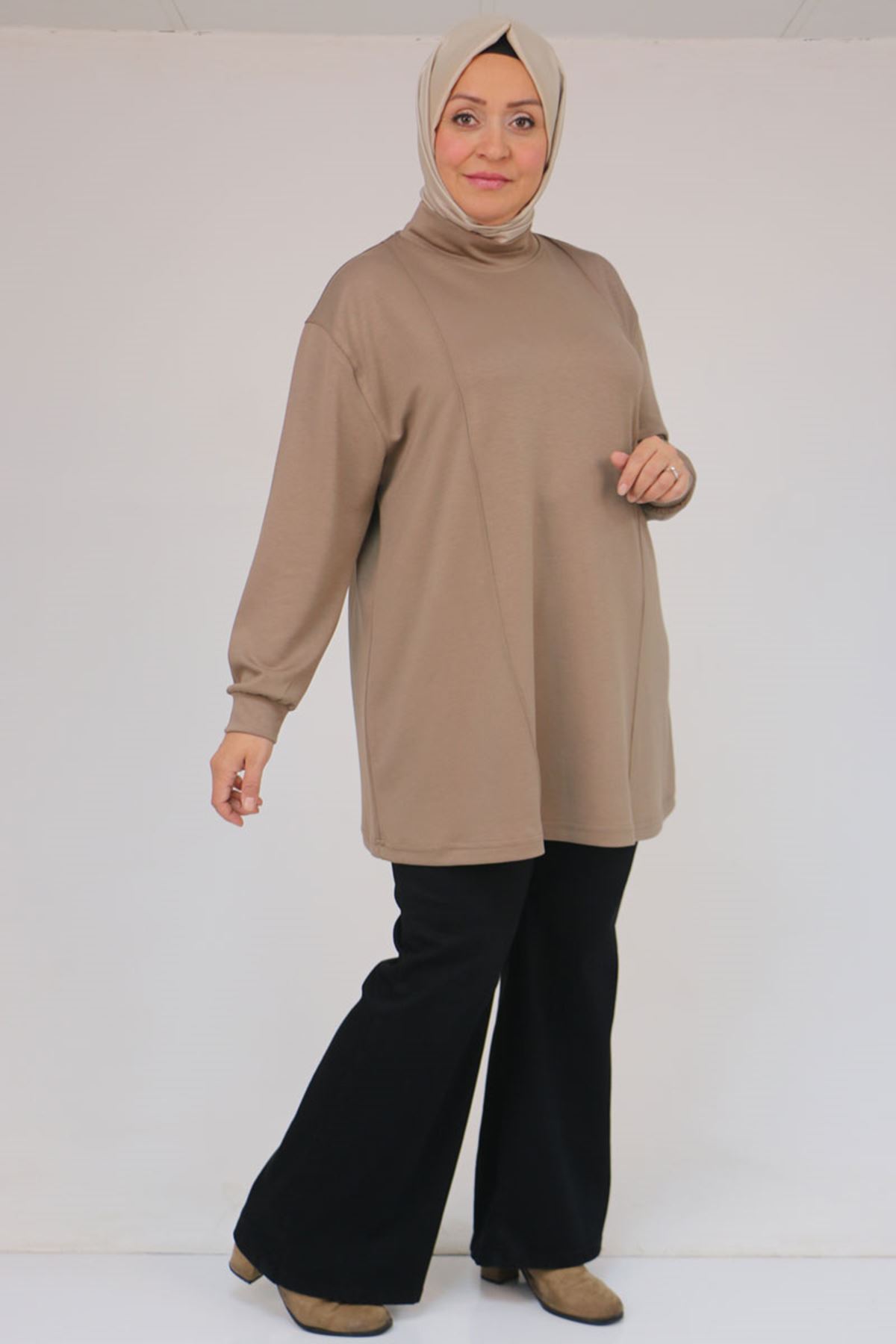 58134 Büyük Beden Boğazlı Yaka Modal Tunik - vizon