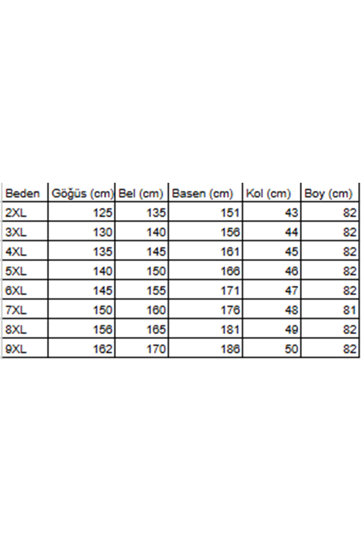 BEL GENİŞLİĞİ :88 cm GÖĞÜS GENİŞLİĞİ :103 cm BASEN :116 cm