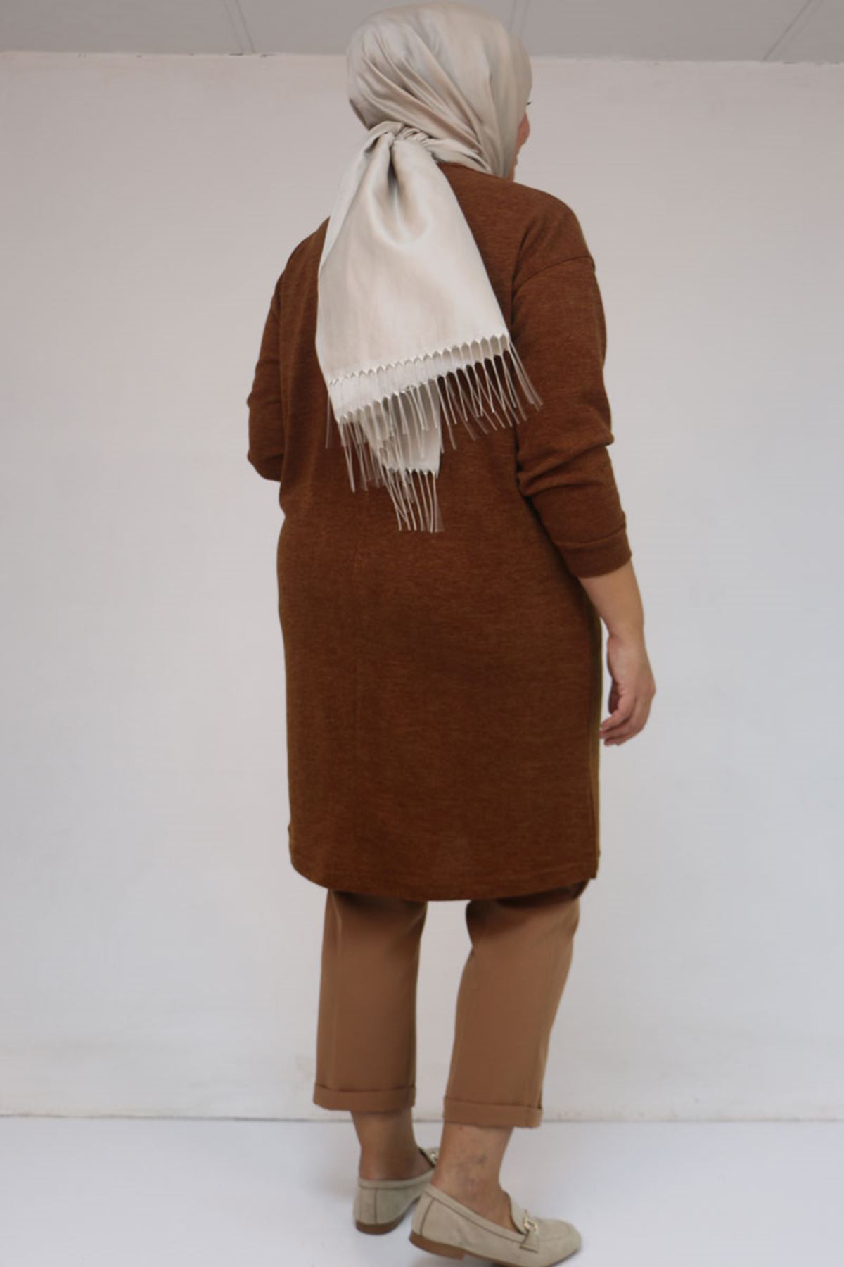 58143 Büyük Beden Düşük Kollu Aksesuar Detaylı Mir Tunik - Taba