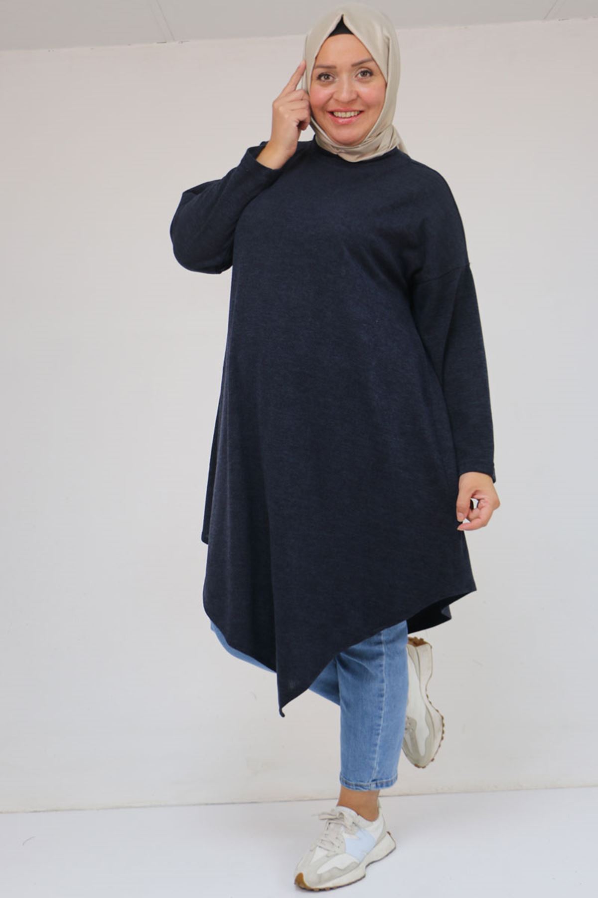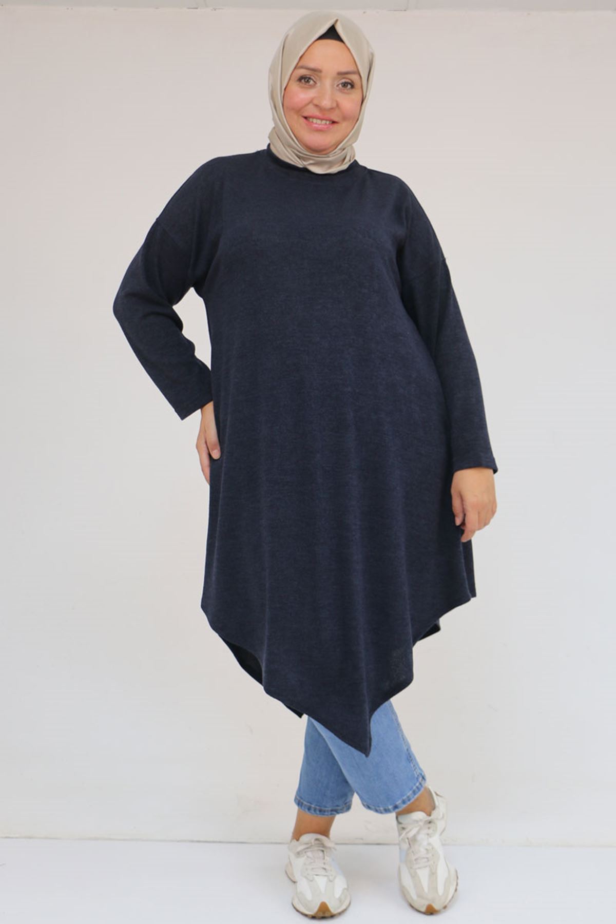 58144 Büyük Beden Hakim Yakalı Mir Tunik - Lacivert