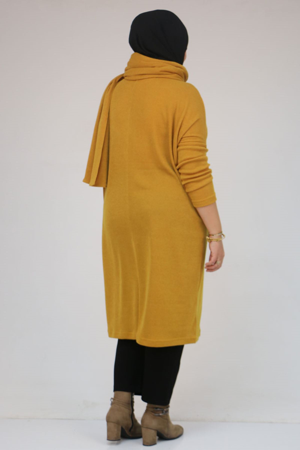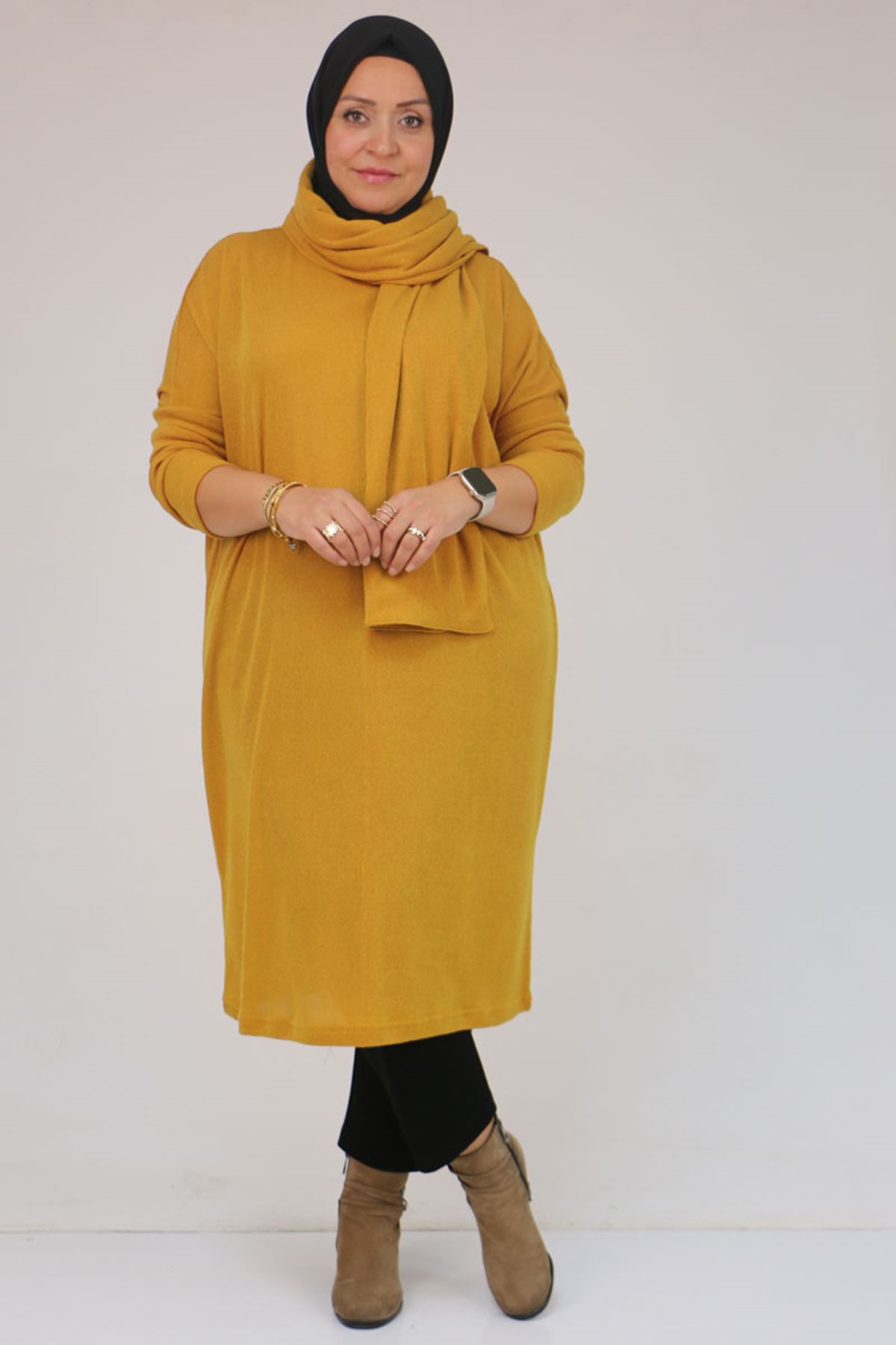 58158 Büyük Beden Atkı Modelli Mir Tunik - Hardal