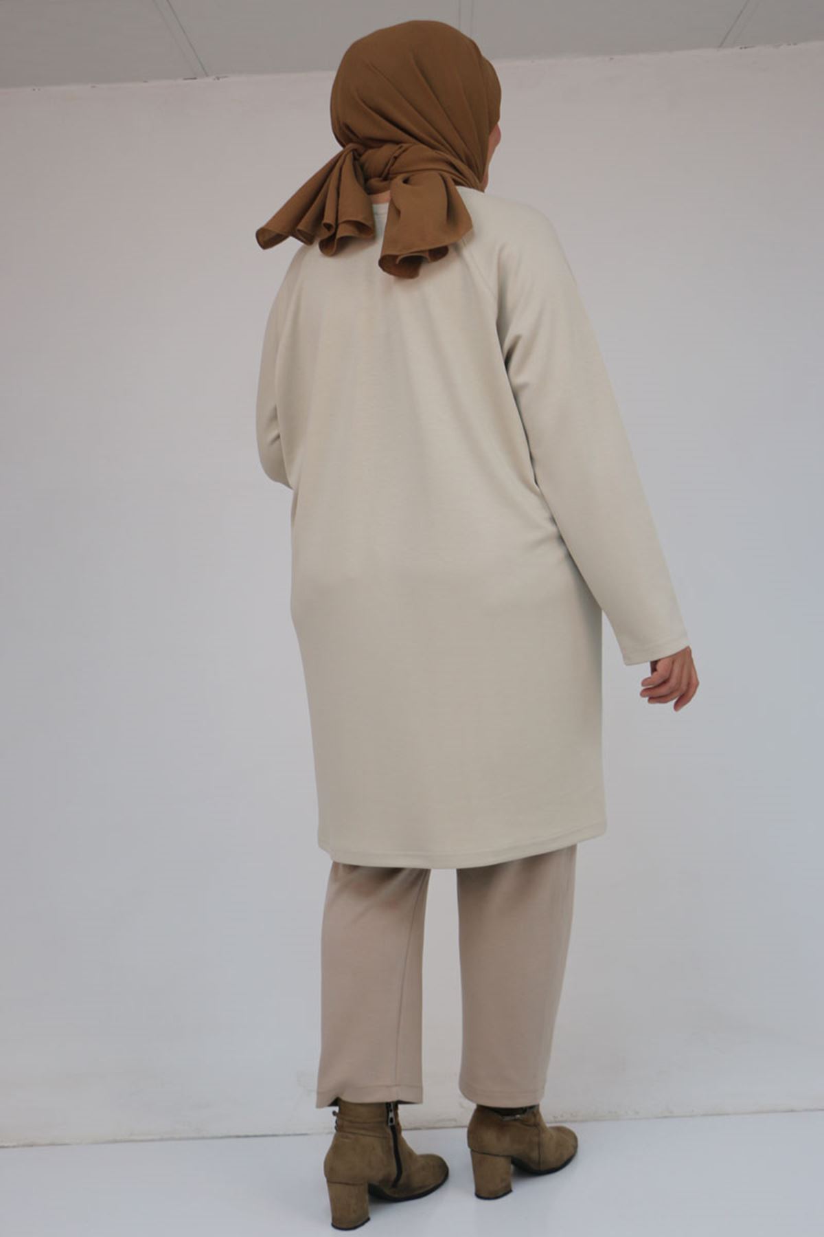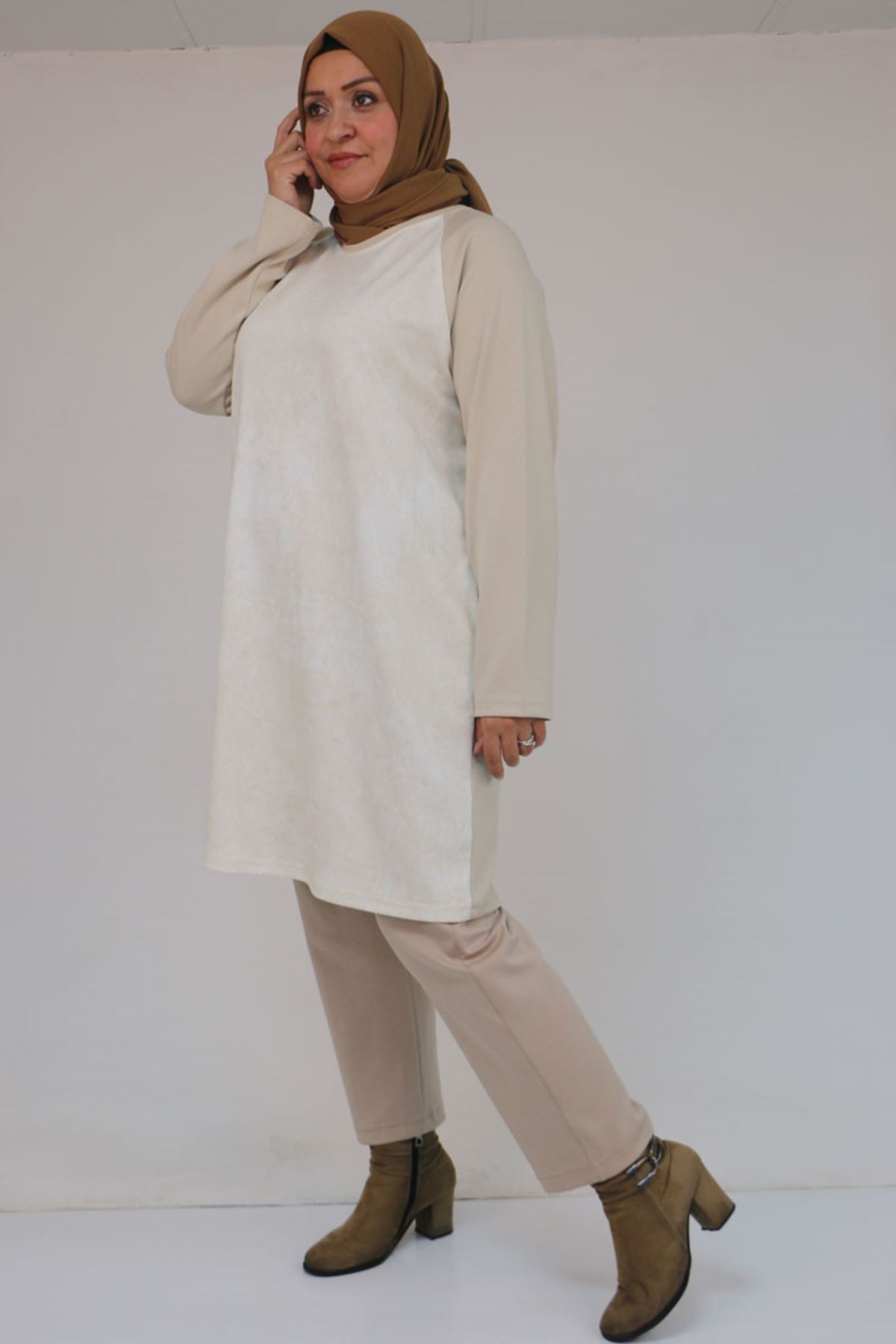 58162 Büyük Beden Garnili Modal Tunik - Bej