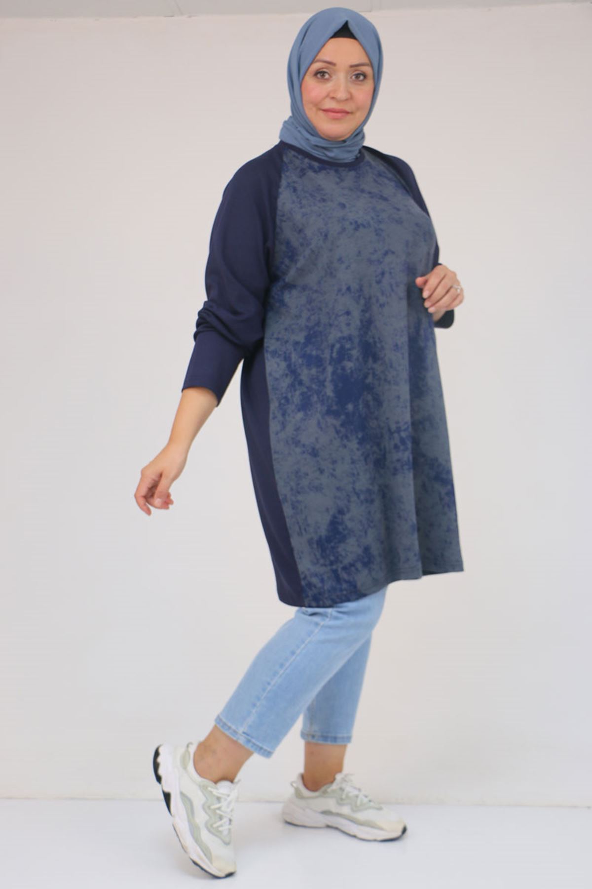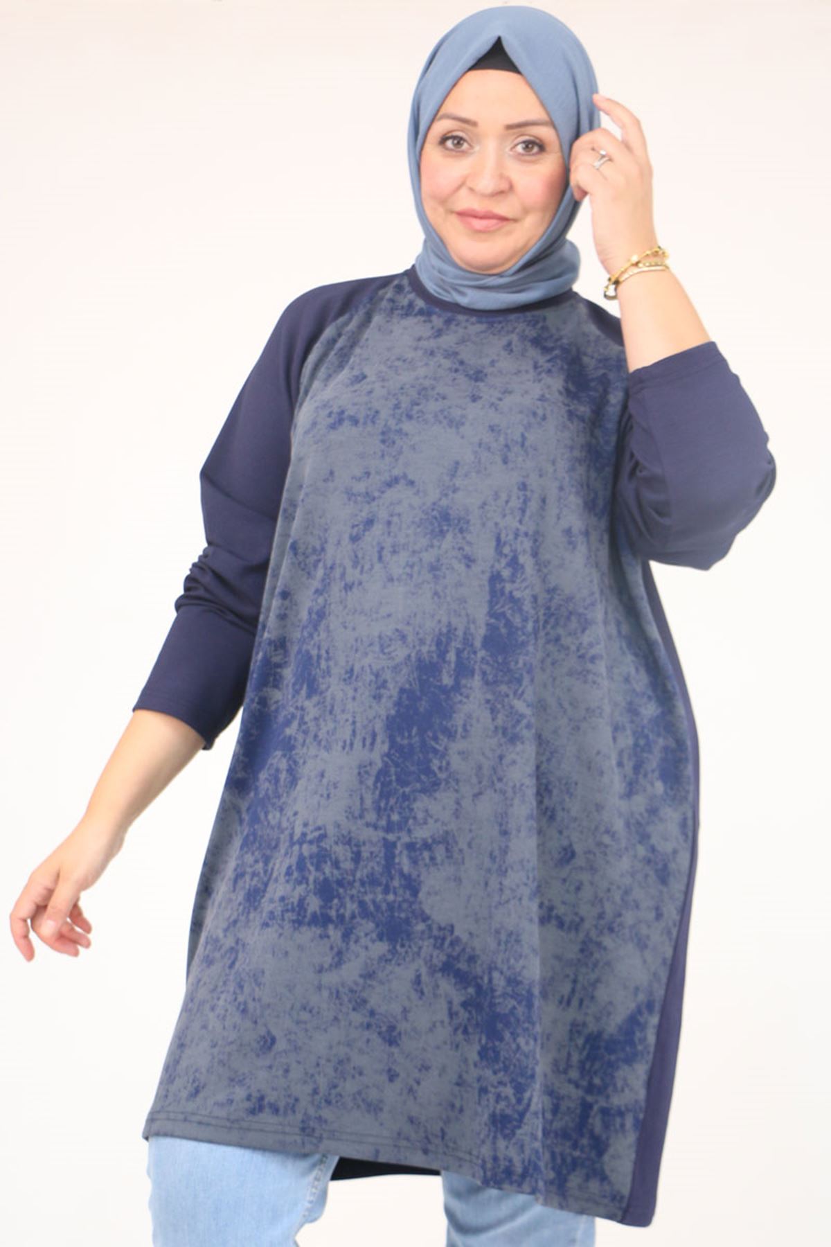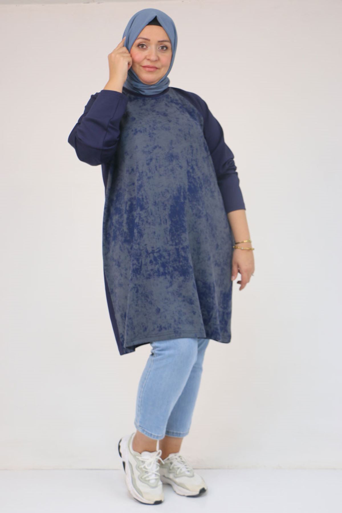 58162 Büyük Beden Garnili Modal Tunik - İndigo