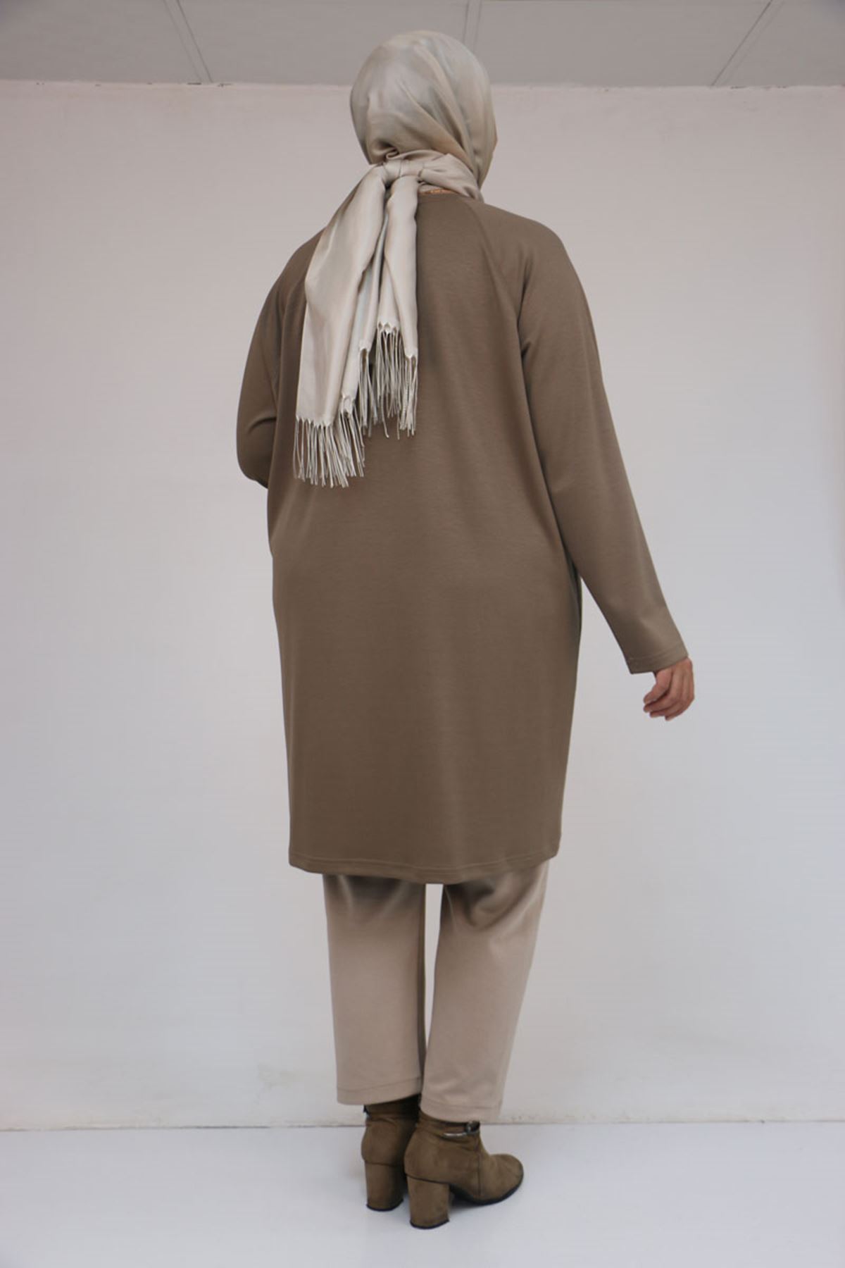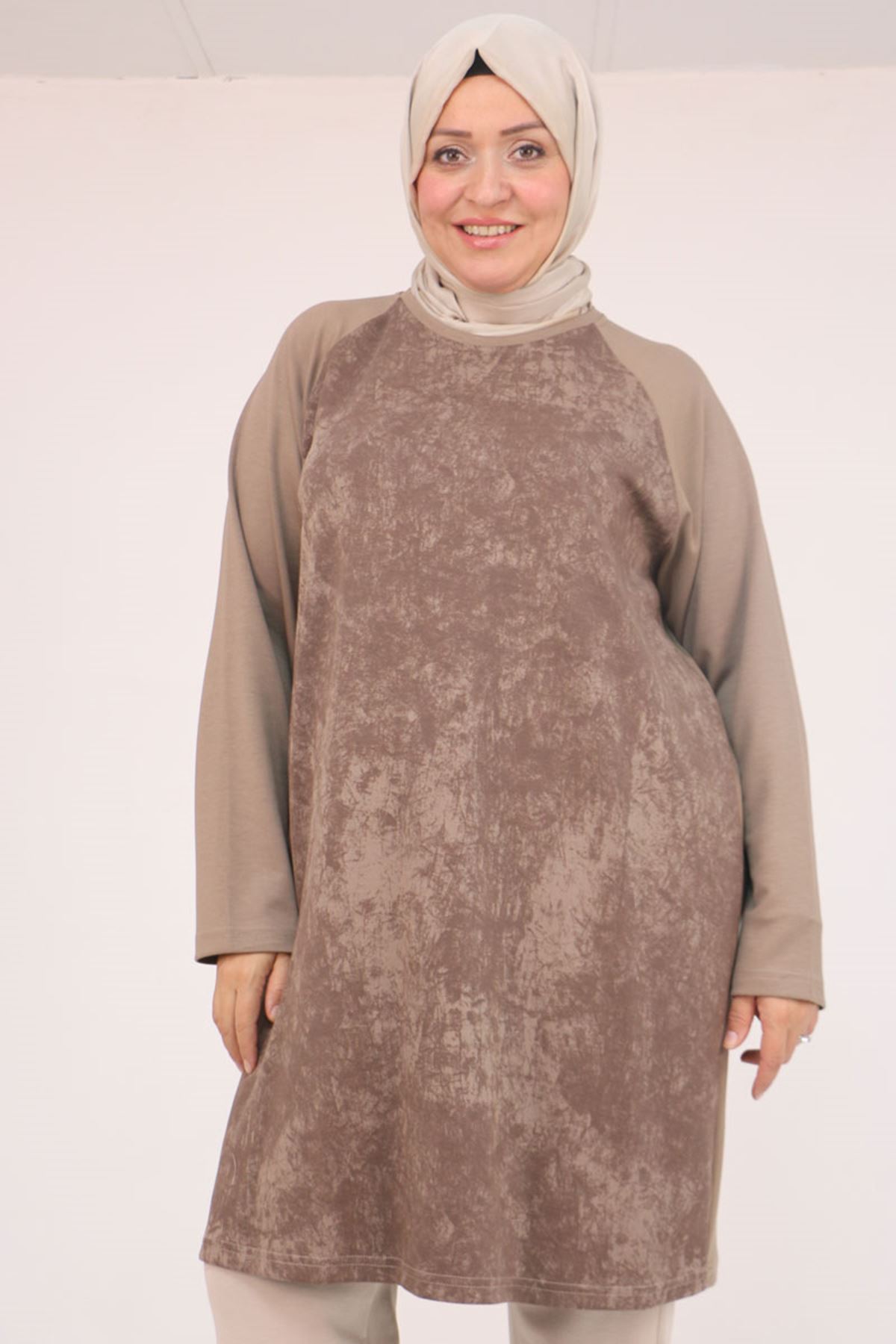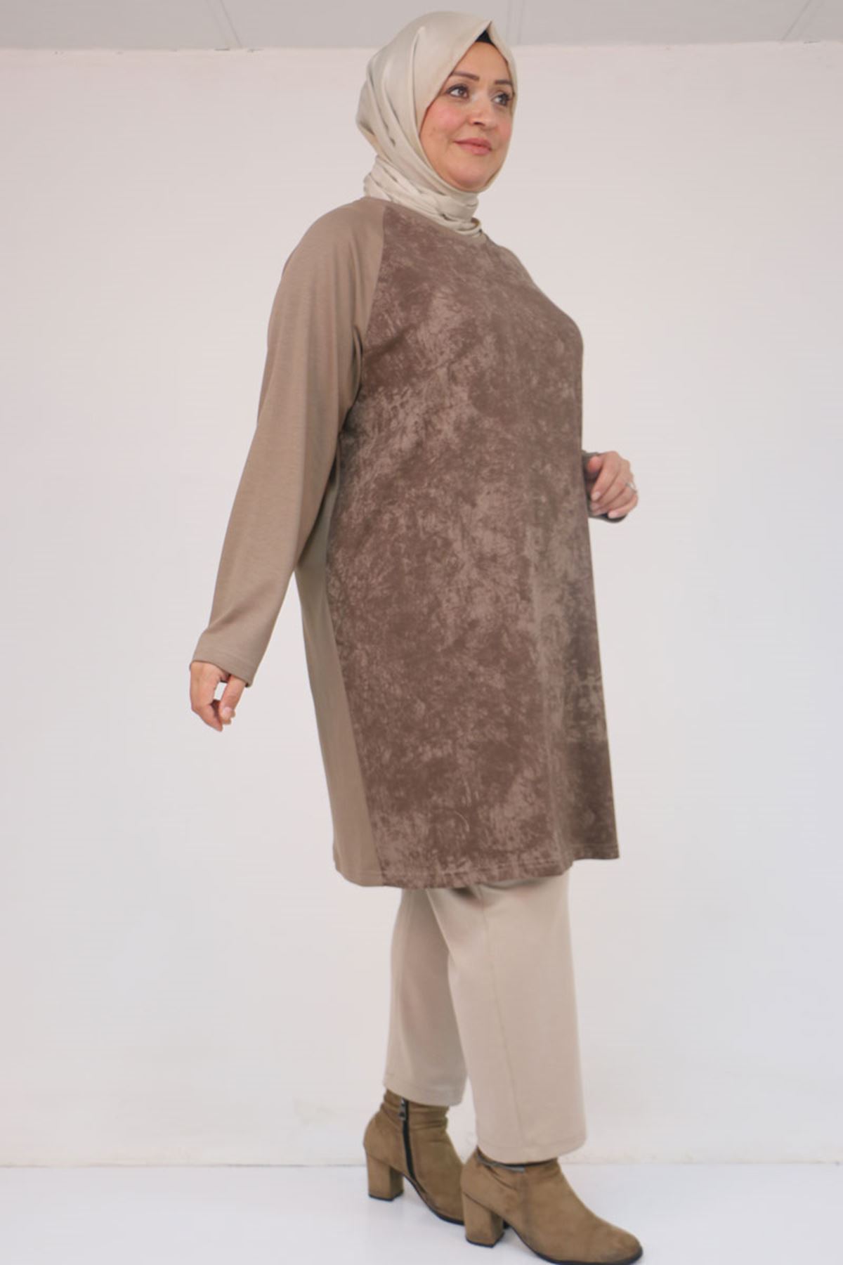 58162 Büyük Beden Garnili Modal Tunik - Vizon