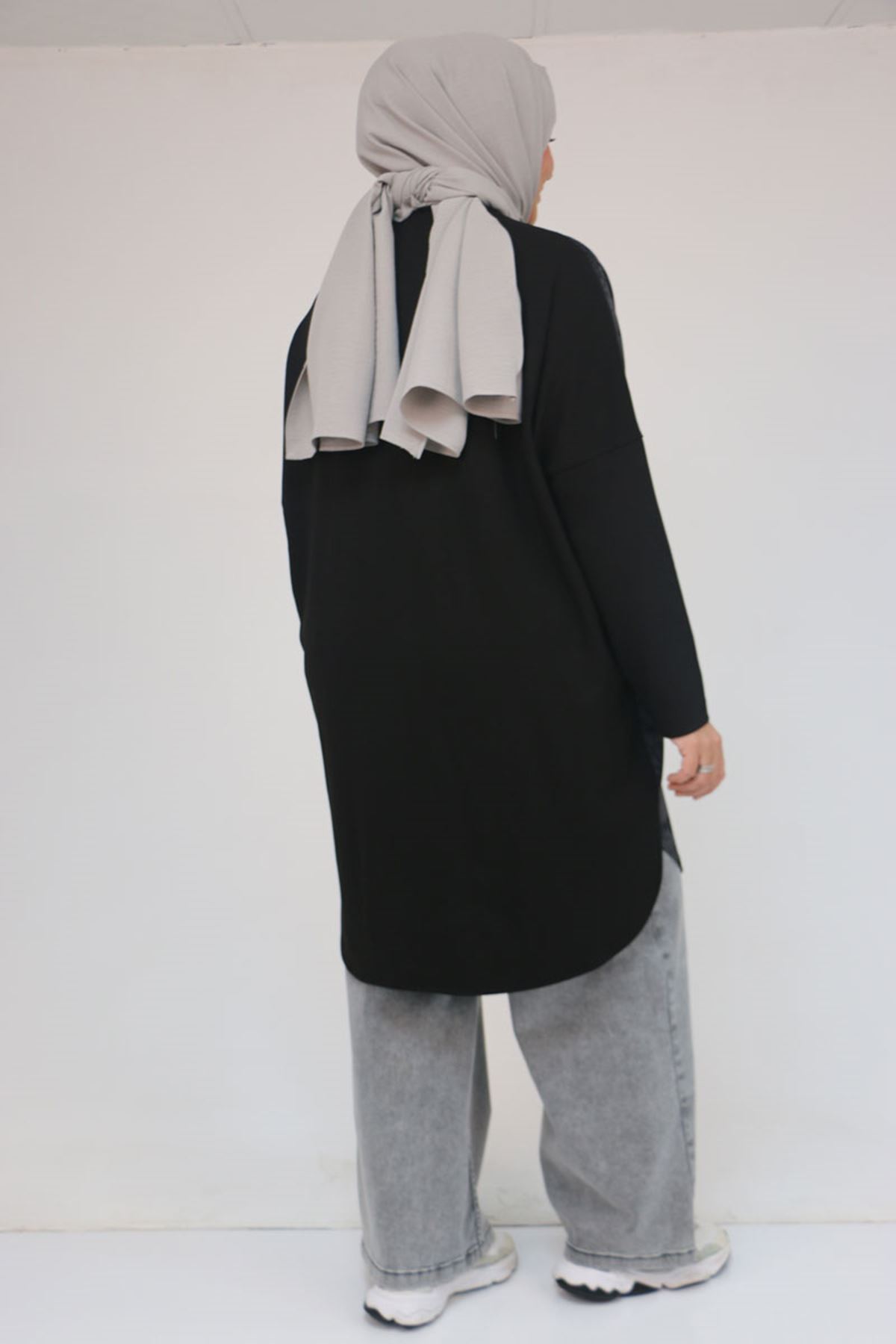 58164 Büyük Beden Basic Modal Tunik - Siyah