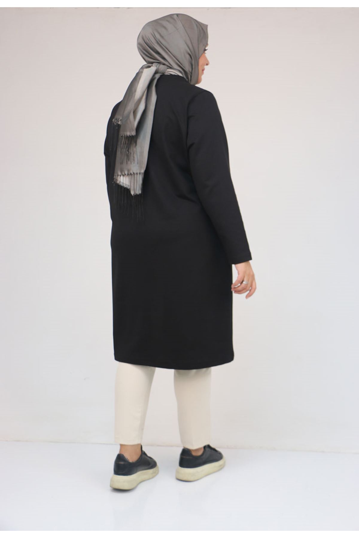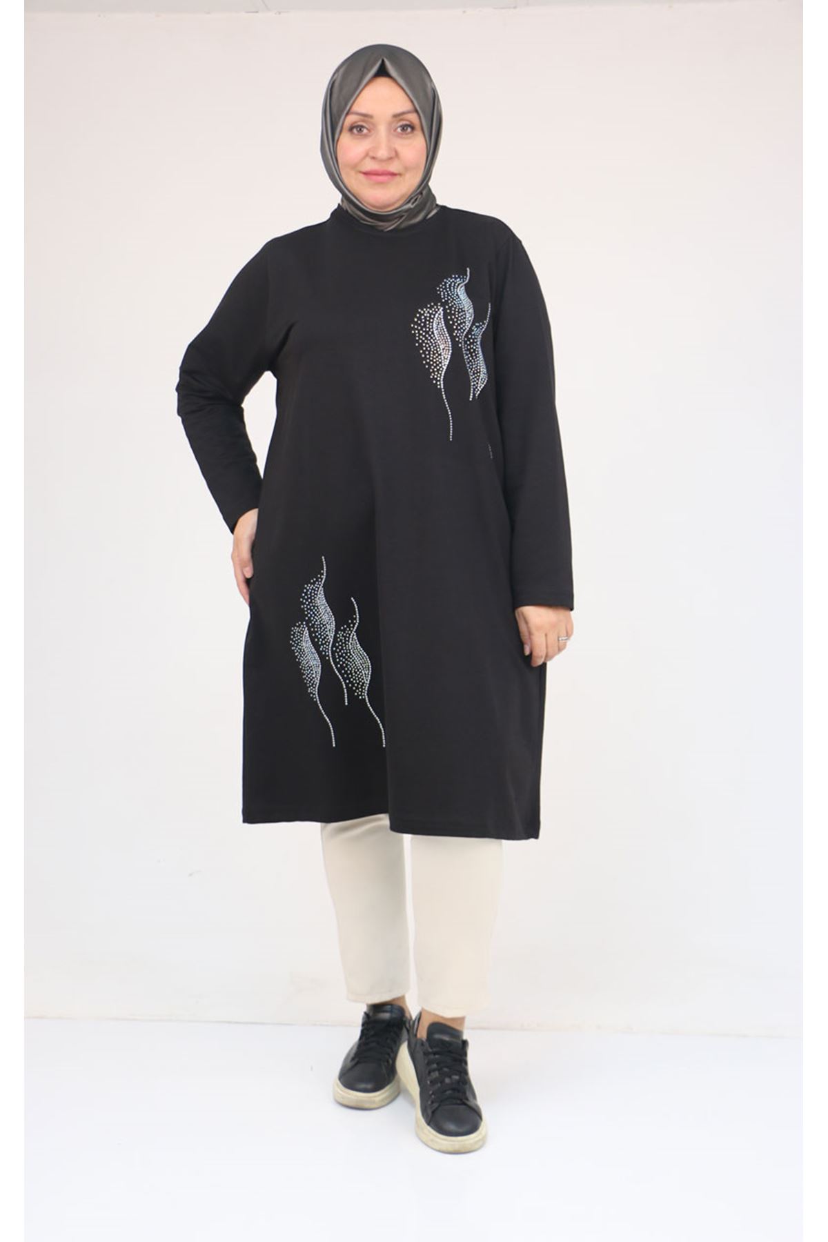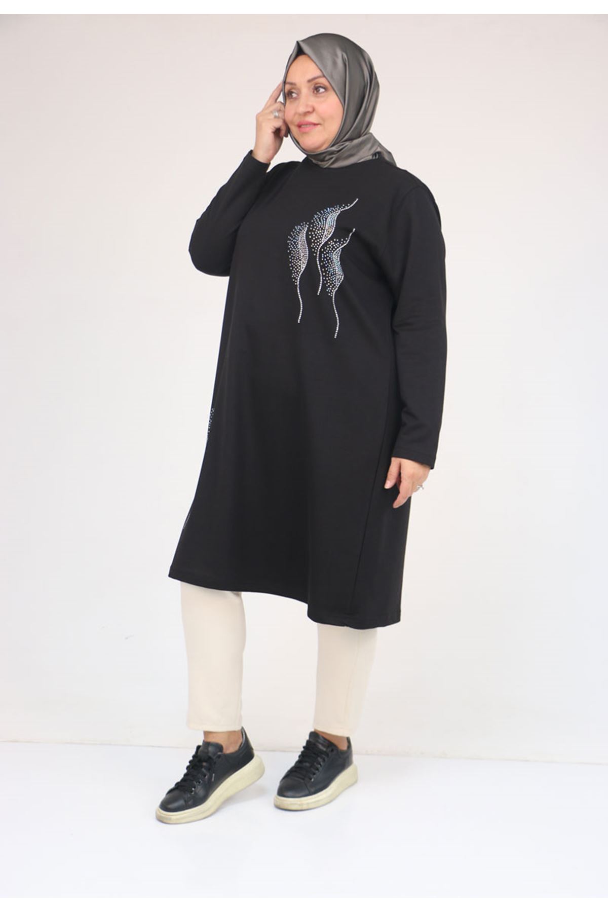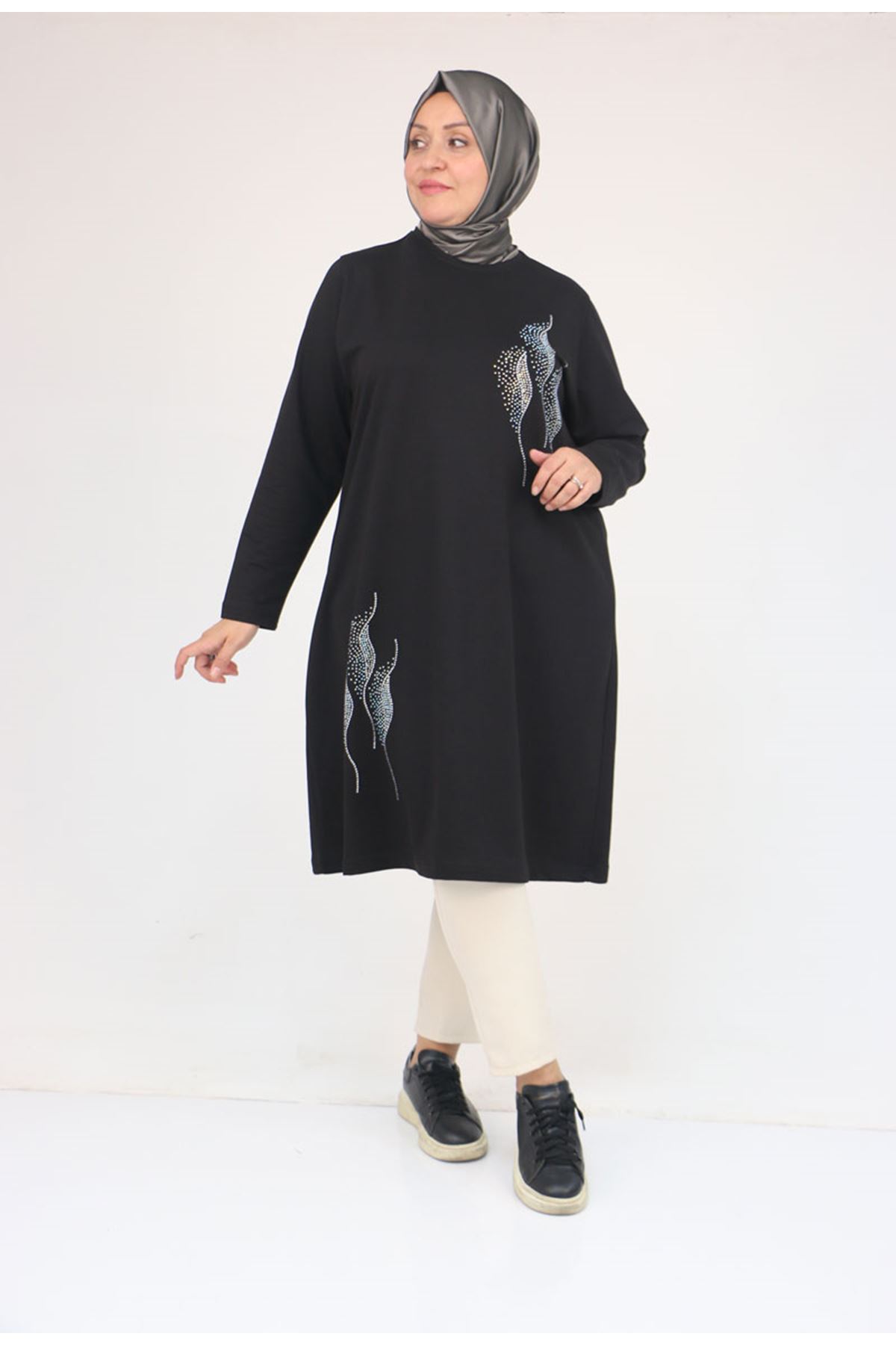 58167 Büyük Beden Taş Baskı Detaylı Modal Tunik - Siyah