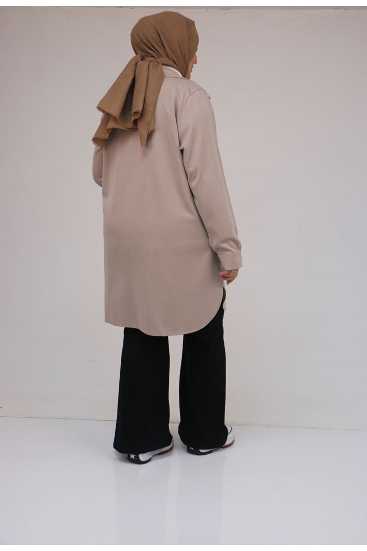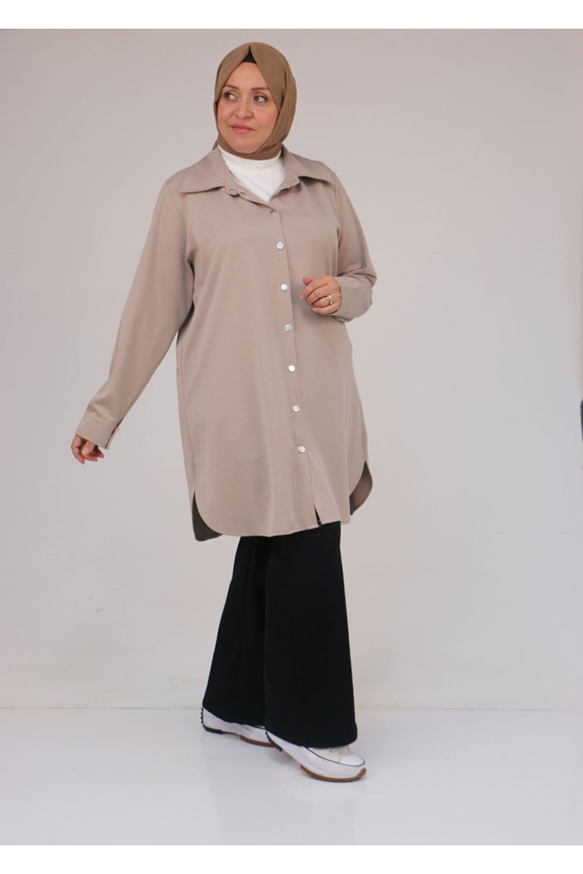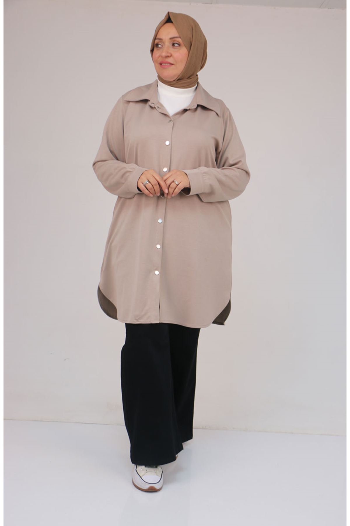 58168 Büyük Beden Erkek Yakalı Çıtçıtlı Modal Tunik - Bej