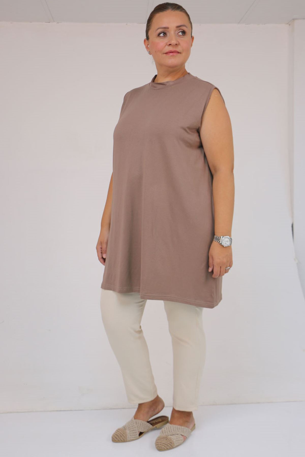 58501 Büyük Beden Hakim Yakalı Penye İçlik - Vizon