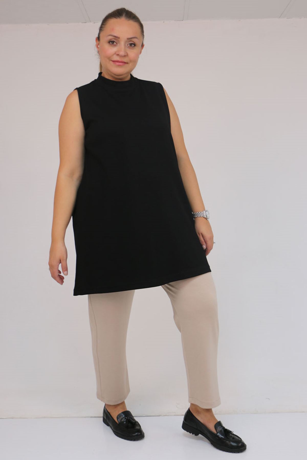 58509 Büyük Beden Uzun Modal İçlik - Siyah