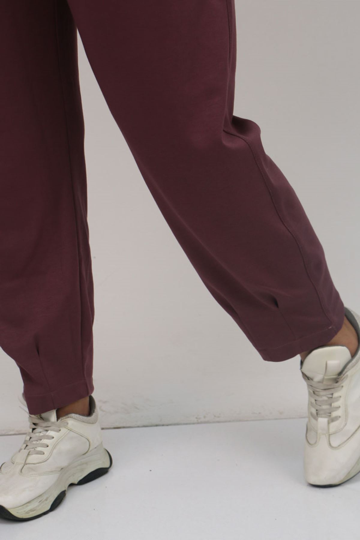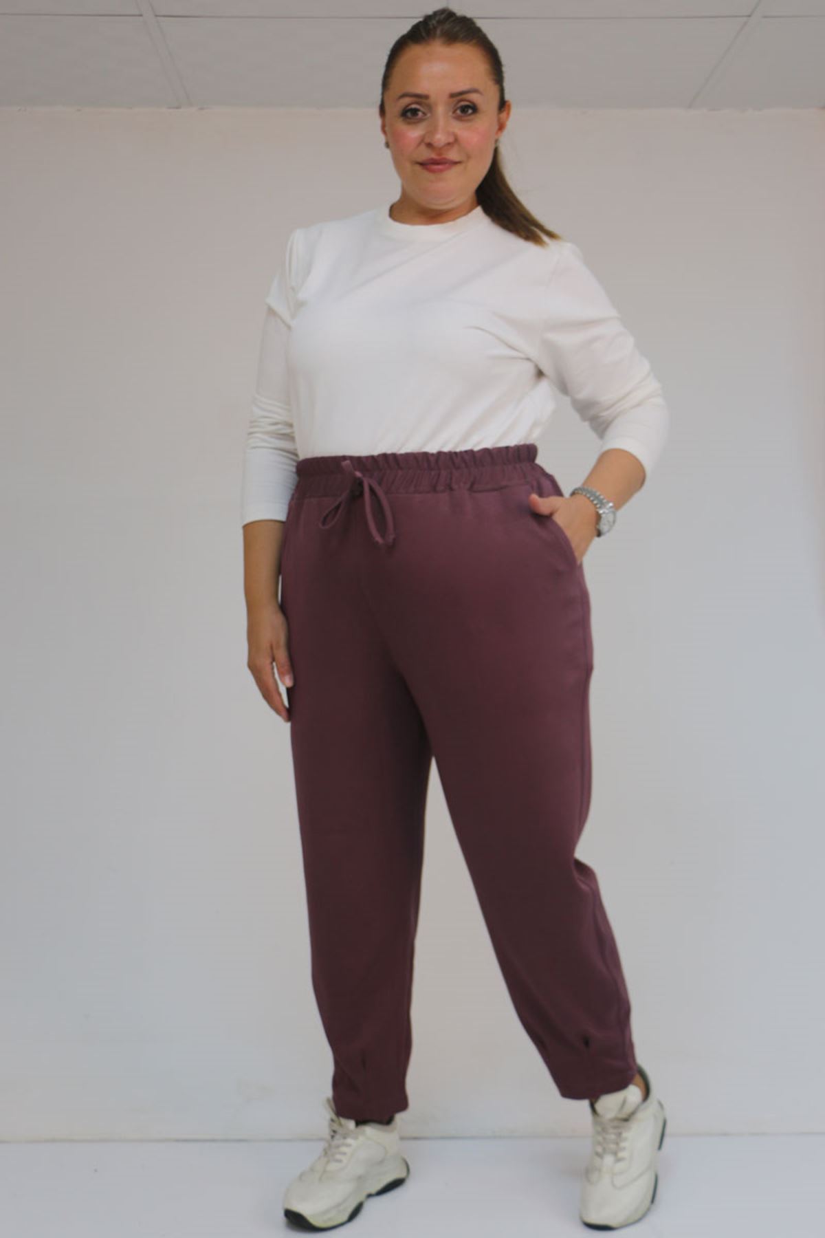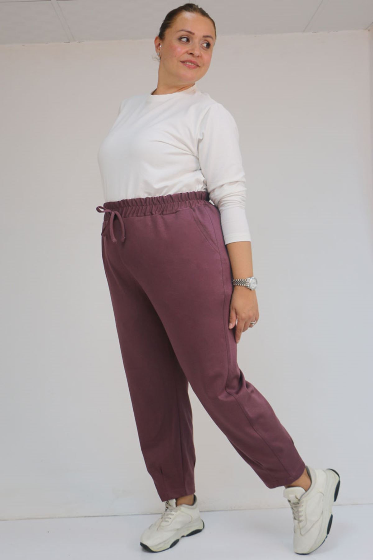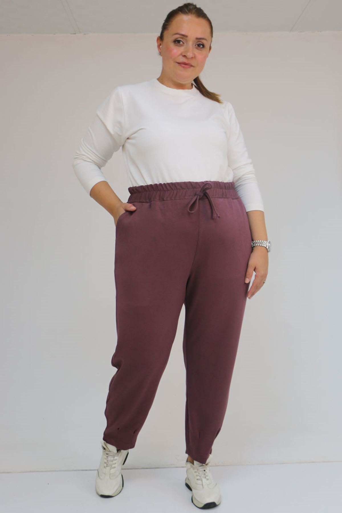 59028 Büyük Beden Paçası Çıma Detaylı Modal Pantolon - Gül Kurusu