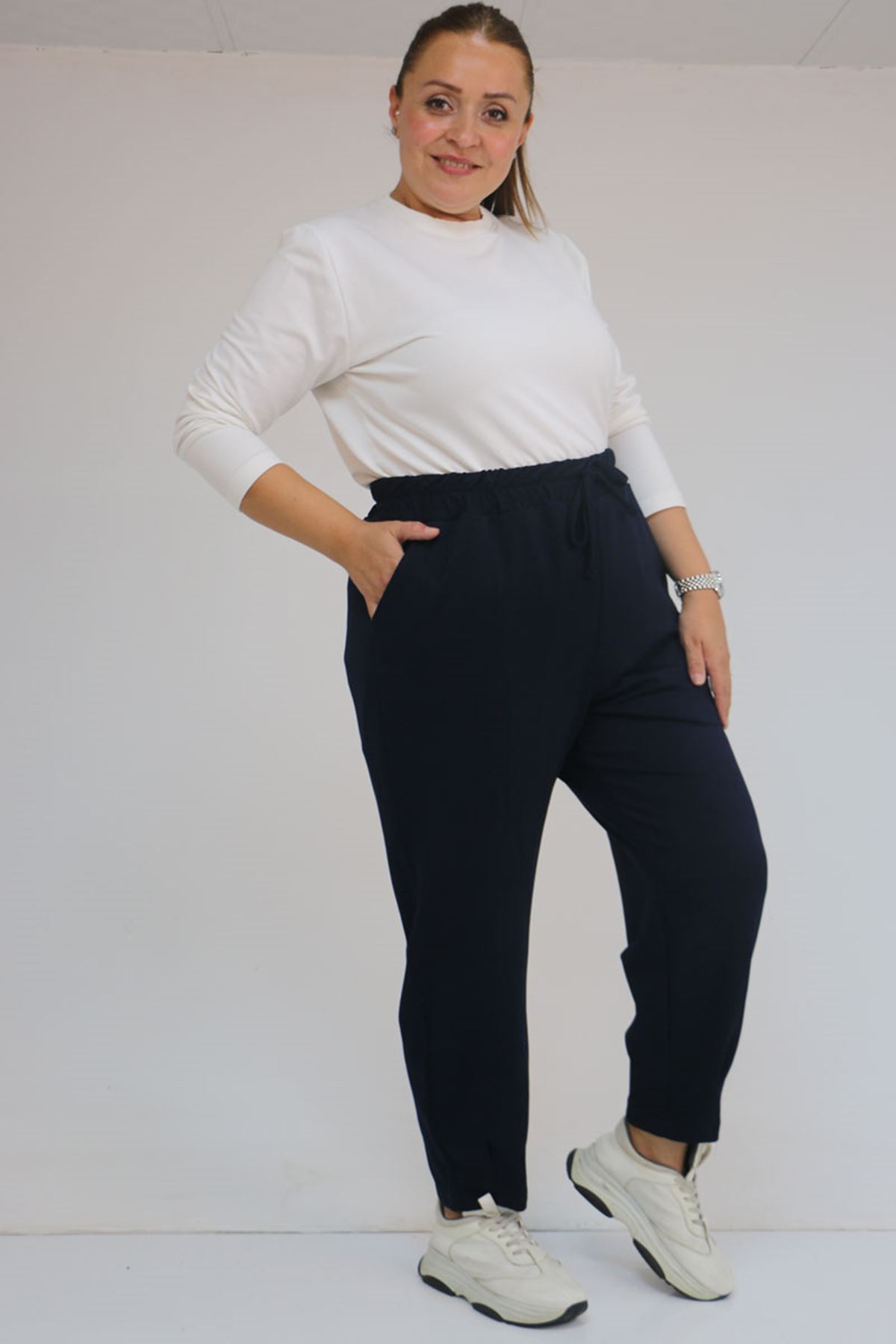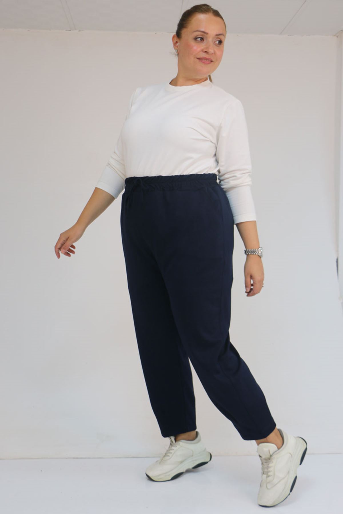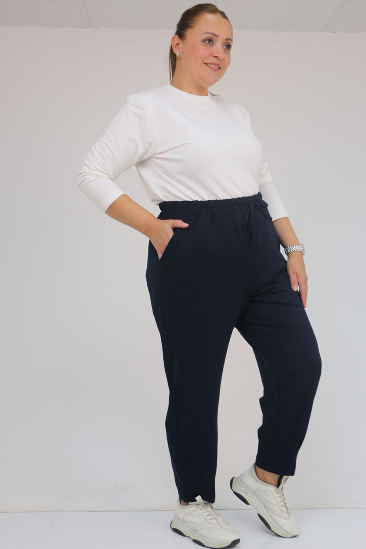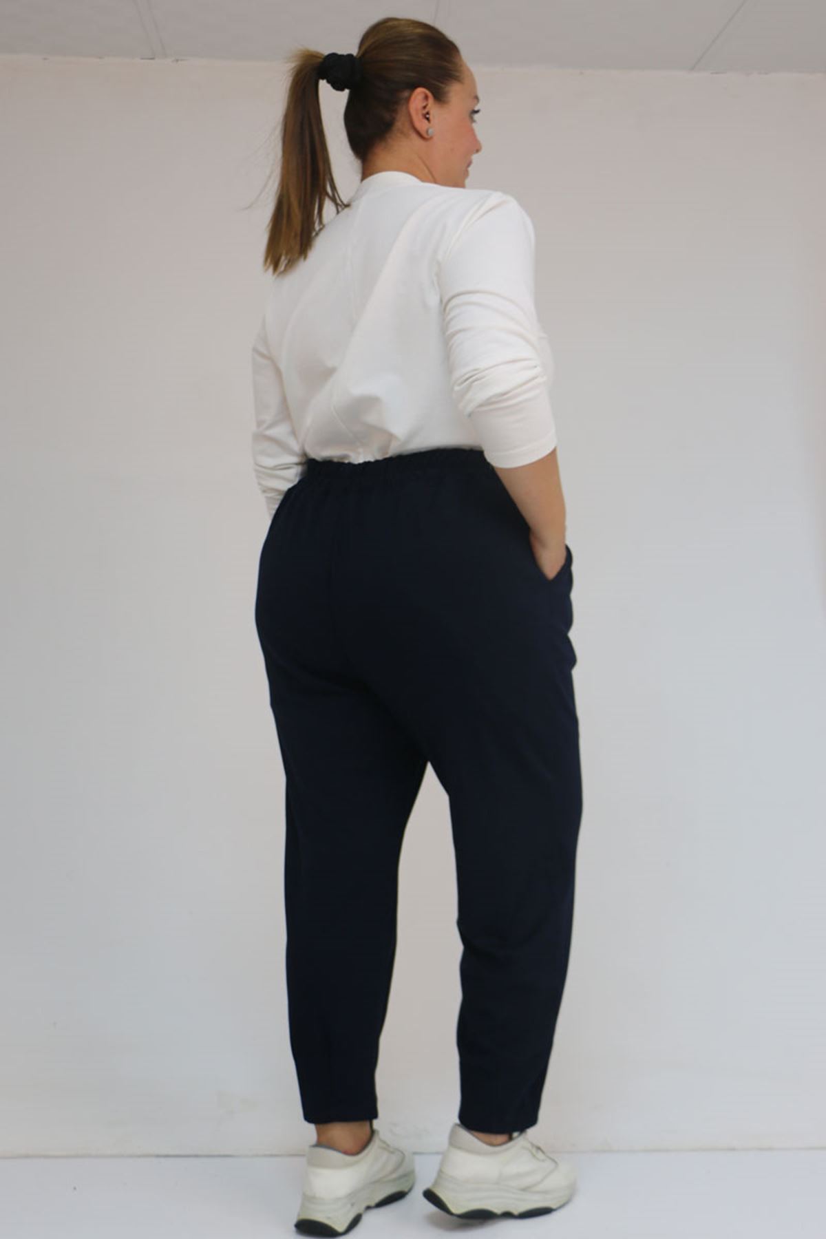 59028 Büyük Beden Paçası Çıma Detaylı Modal Pantolon - Lacivert