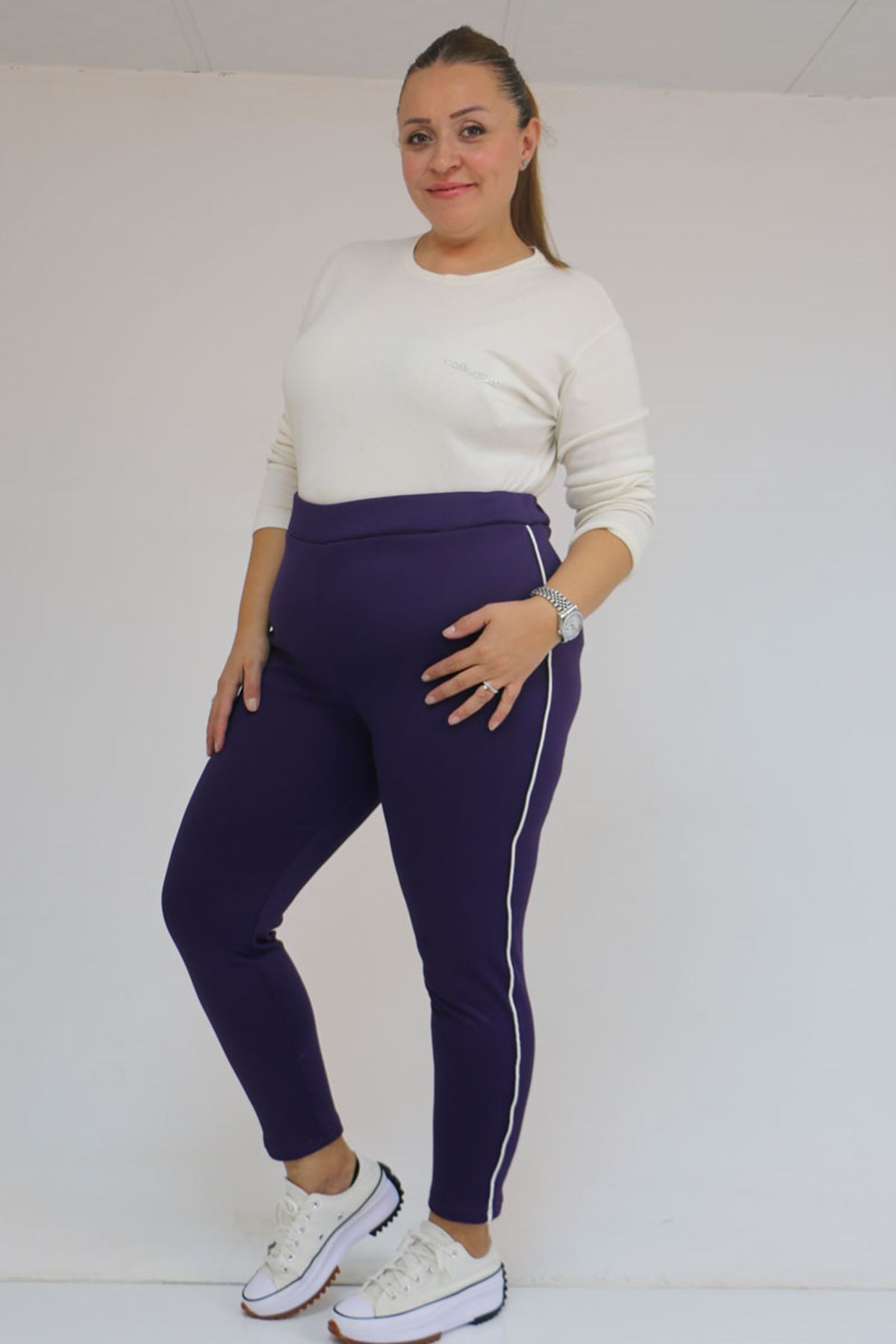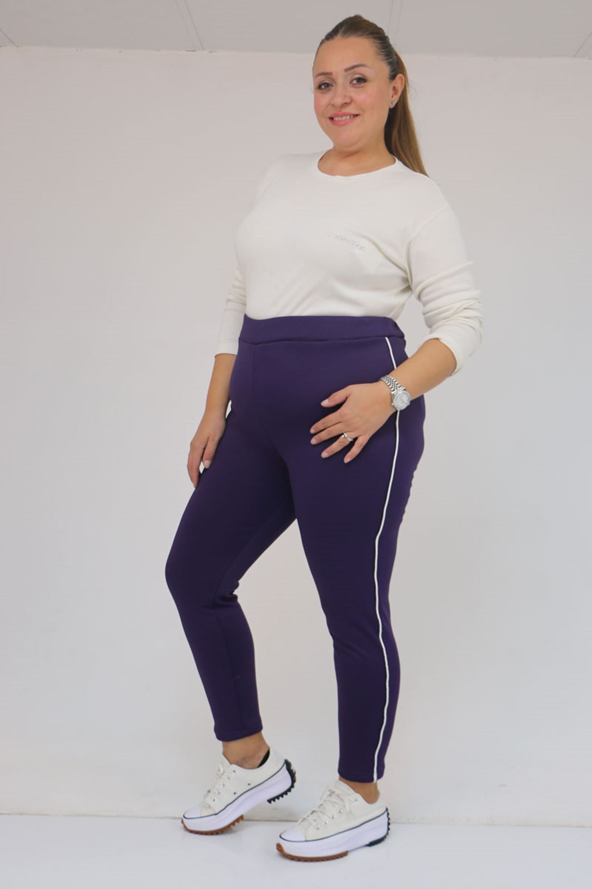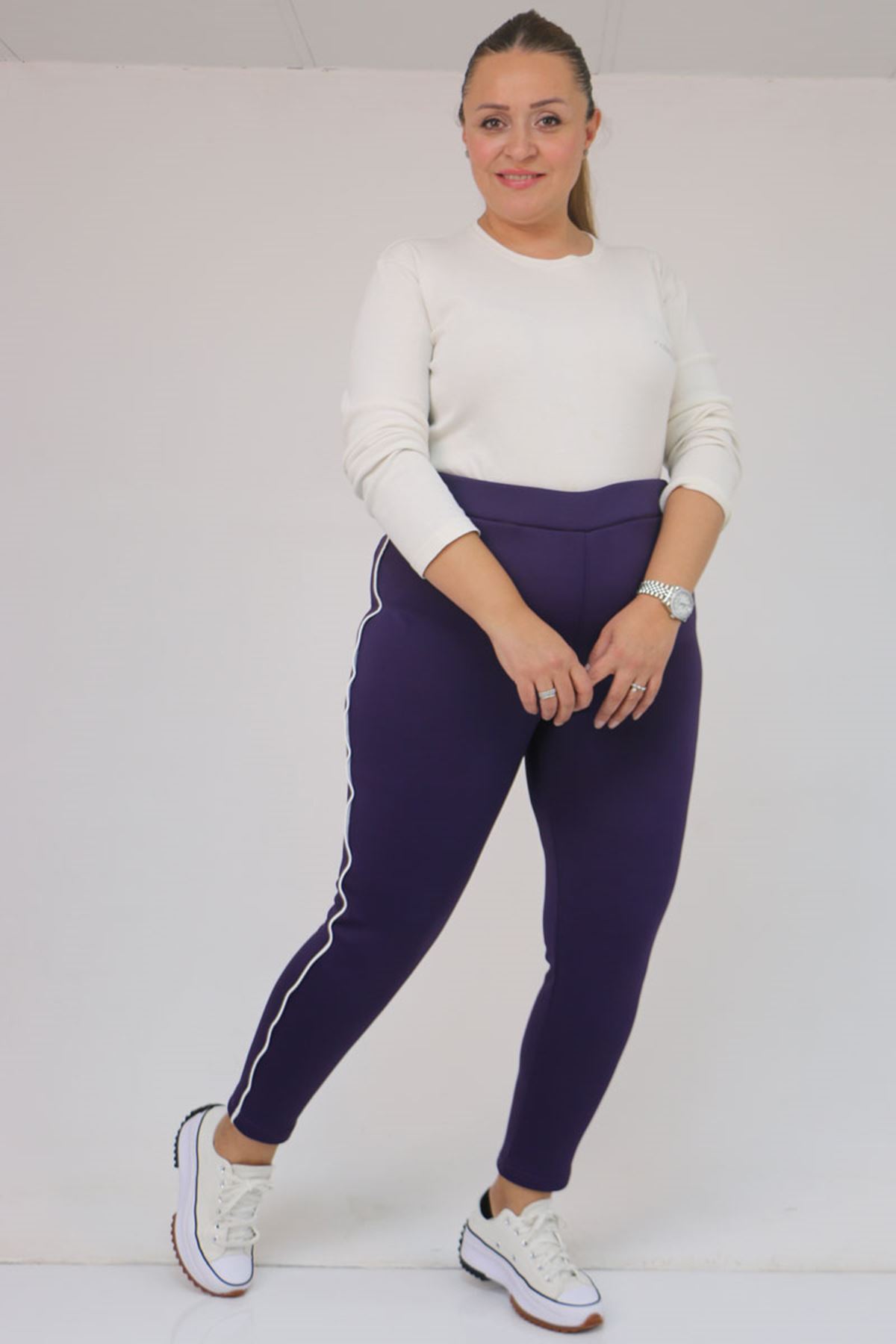 59504 Büyük Beden Biyeli İçi Şardonlu Tayt - Mor
