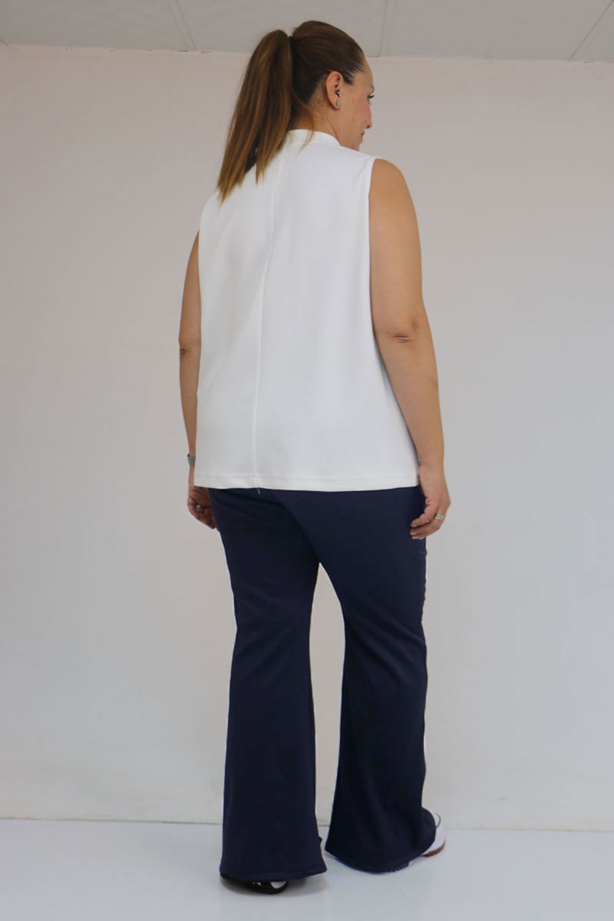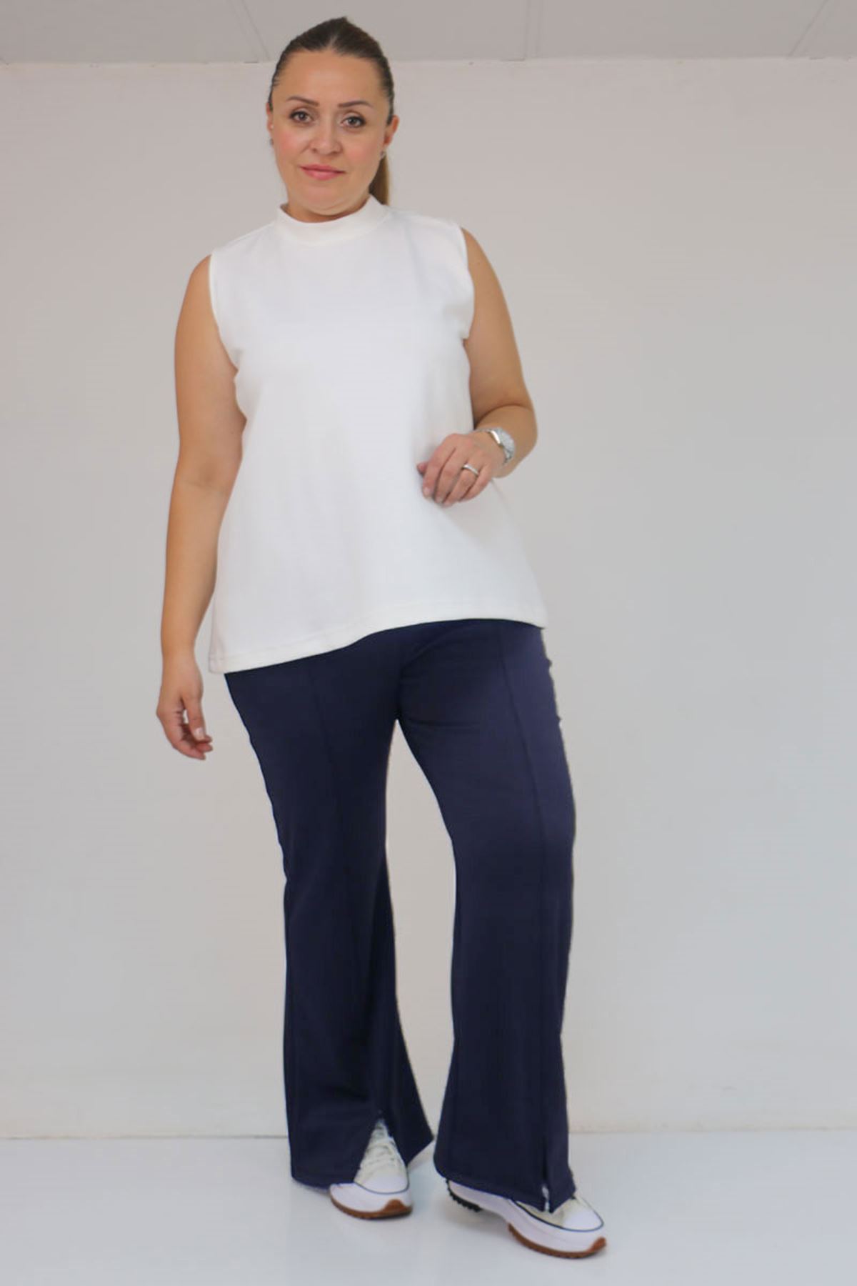 59506 Büyük Beden Paçası Yırtmaçlı İspanyol Paça Tayt Pantolon - Lacivert