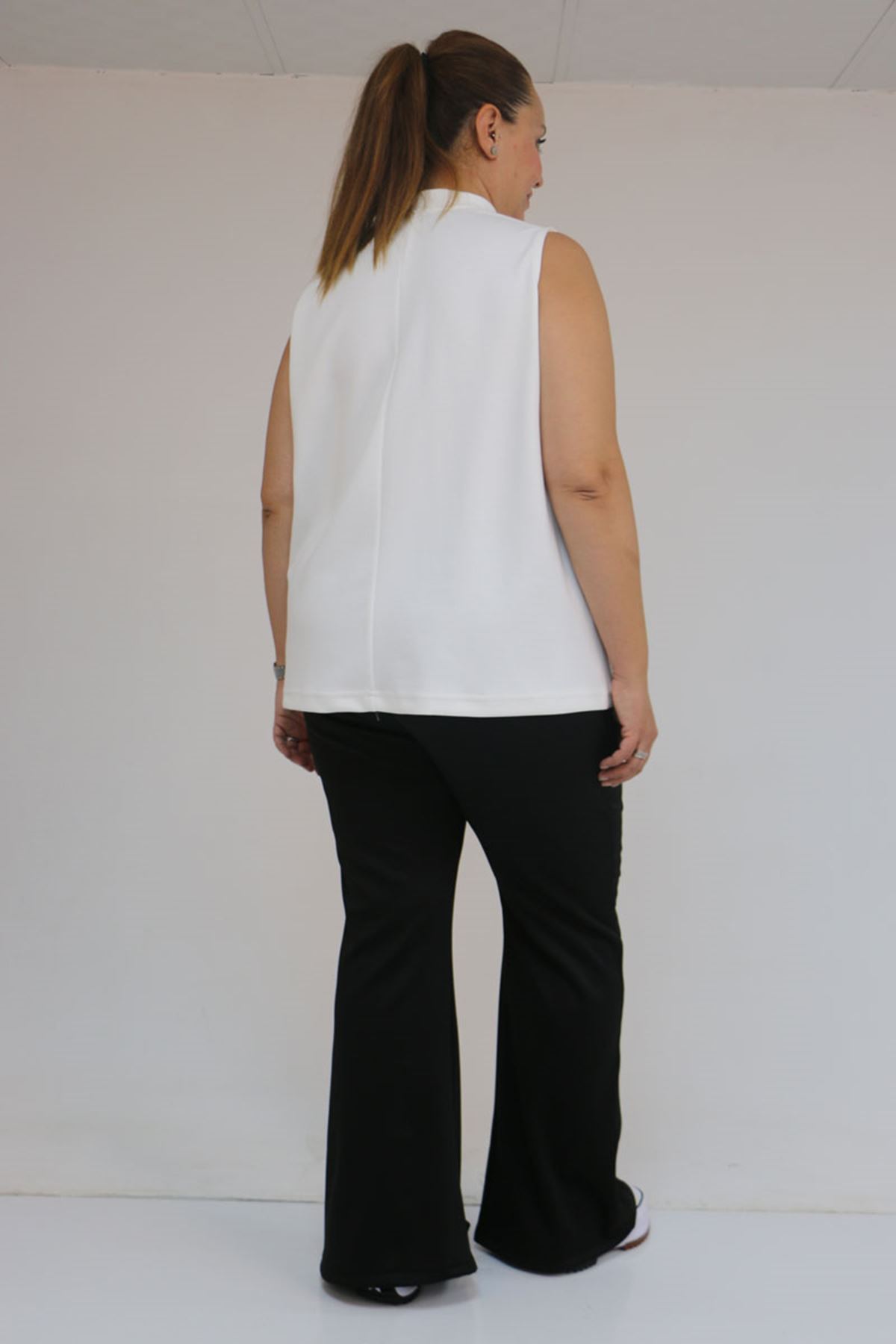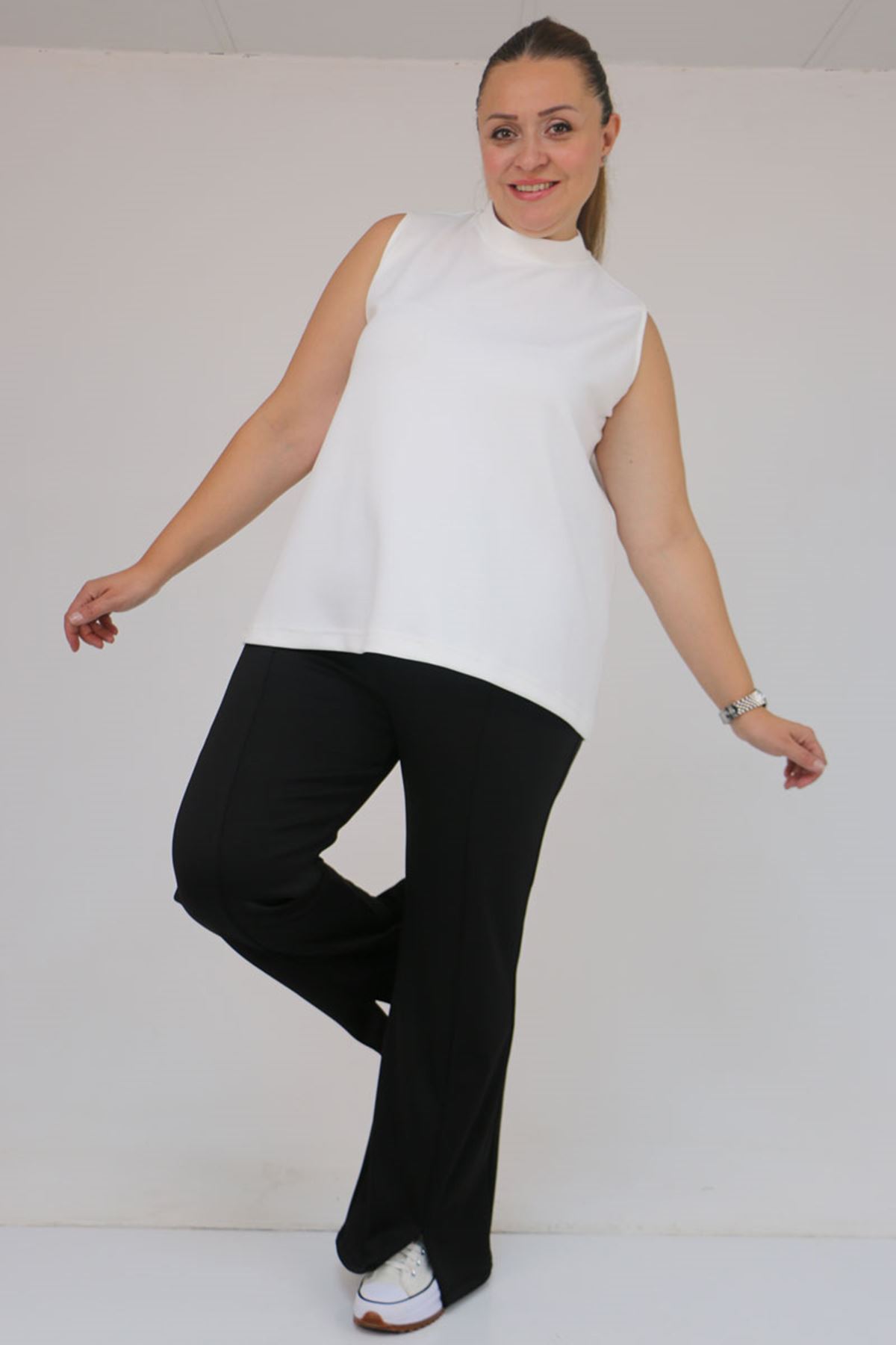 59506 Büyük Beden Paçası Yırtmaçlı İspanyol Paça Tayt Pantolon - Siyah