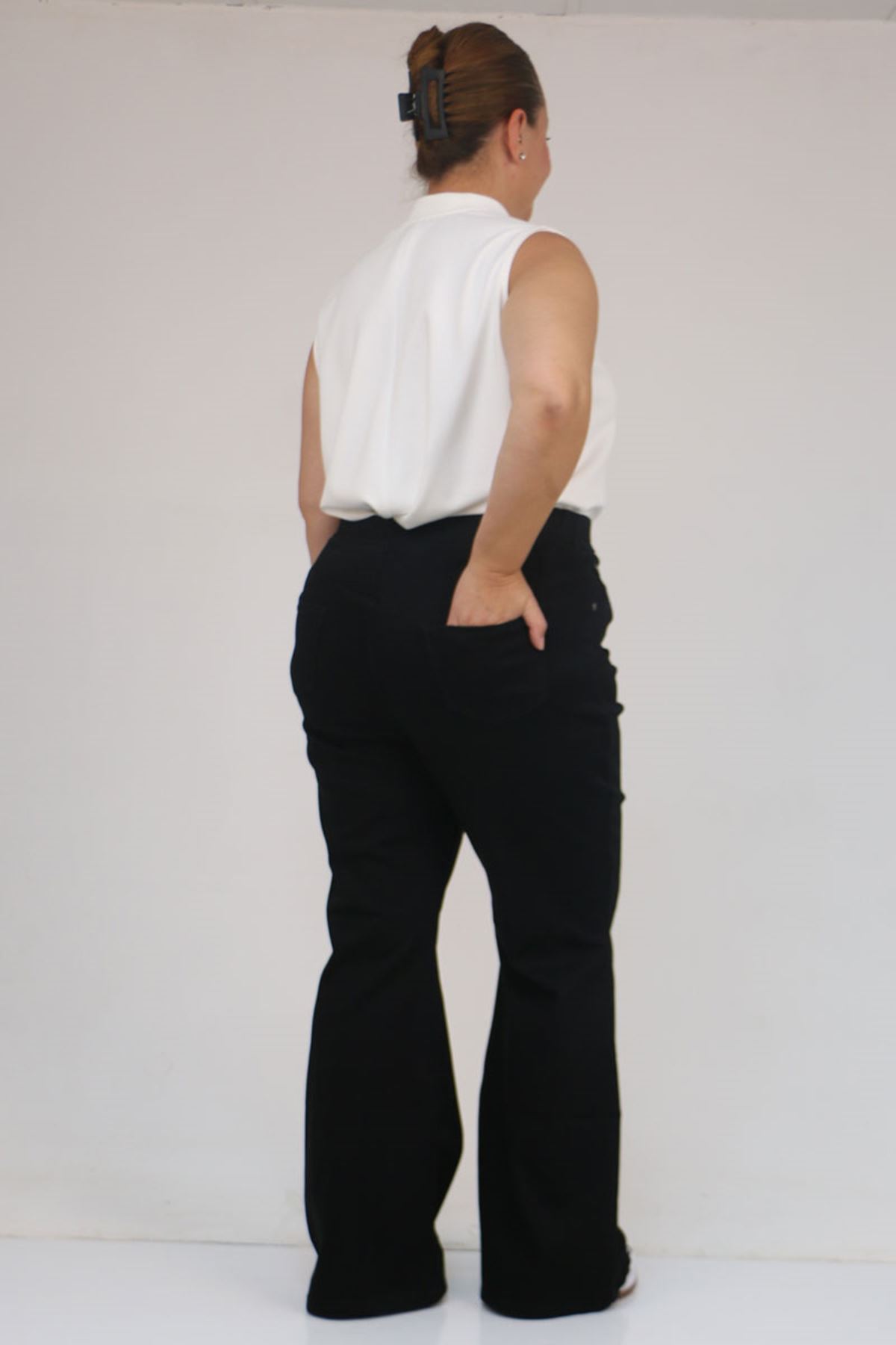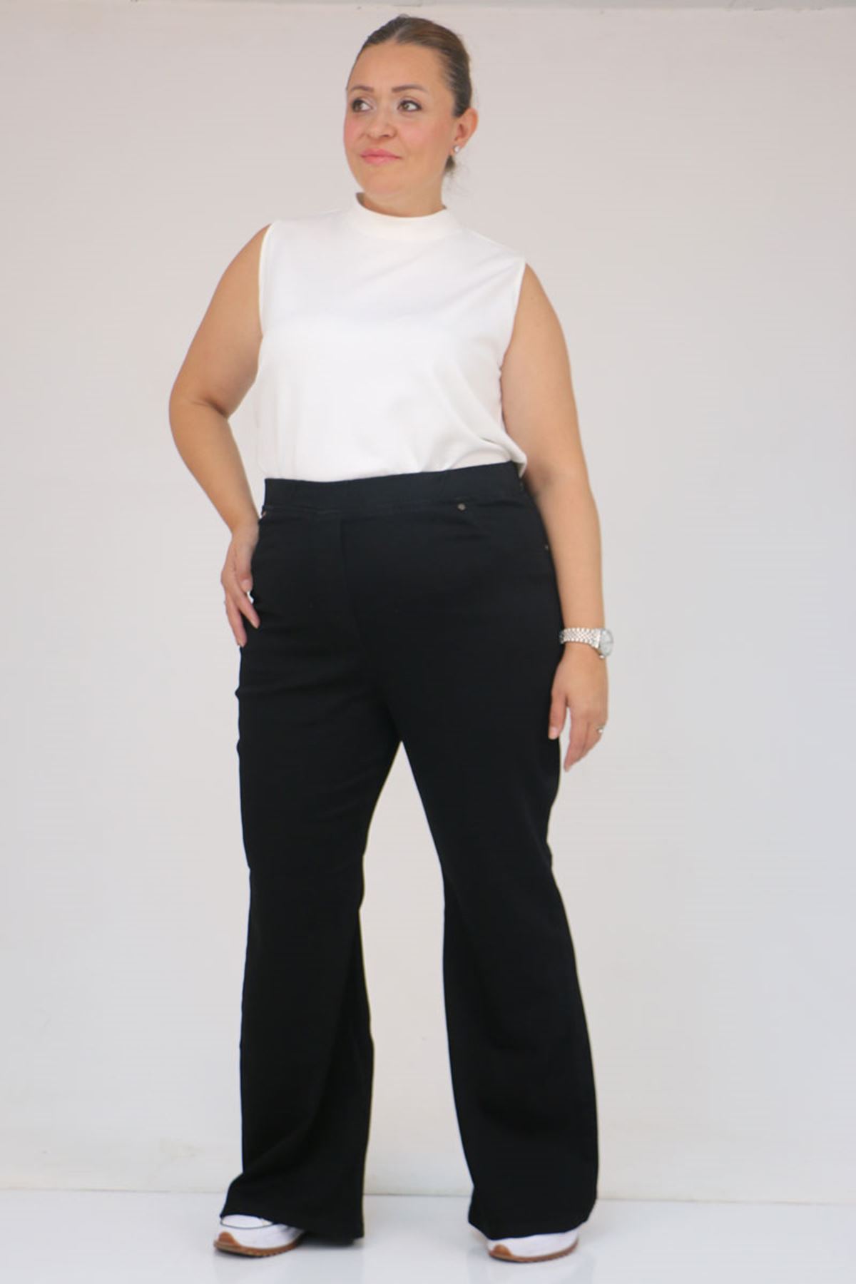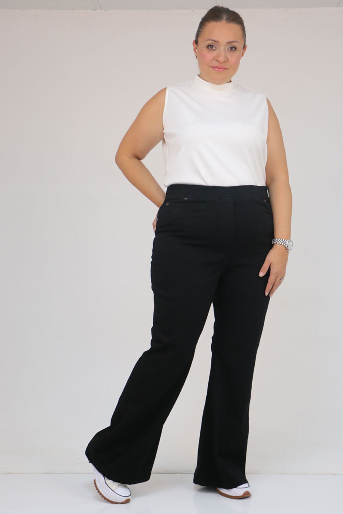 9137-20 Büyük Beden İspanyol Paça Kot Pantolon - Siyah