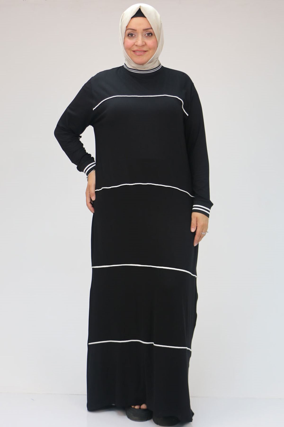 D-42022 Büyük Beden Ara Biyeli Penye Elbise - Siyah