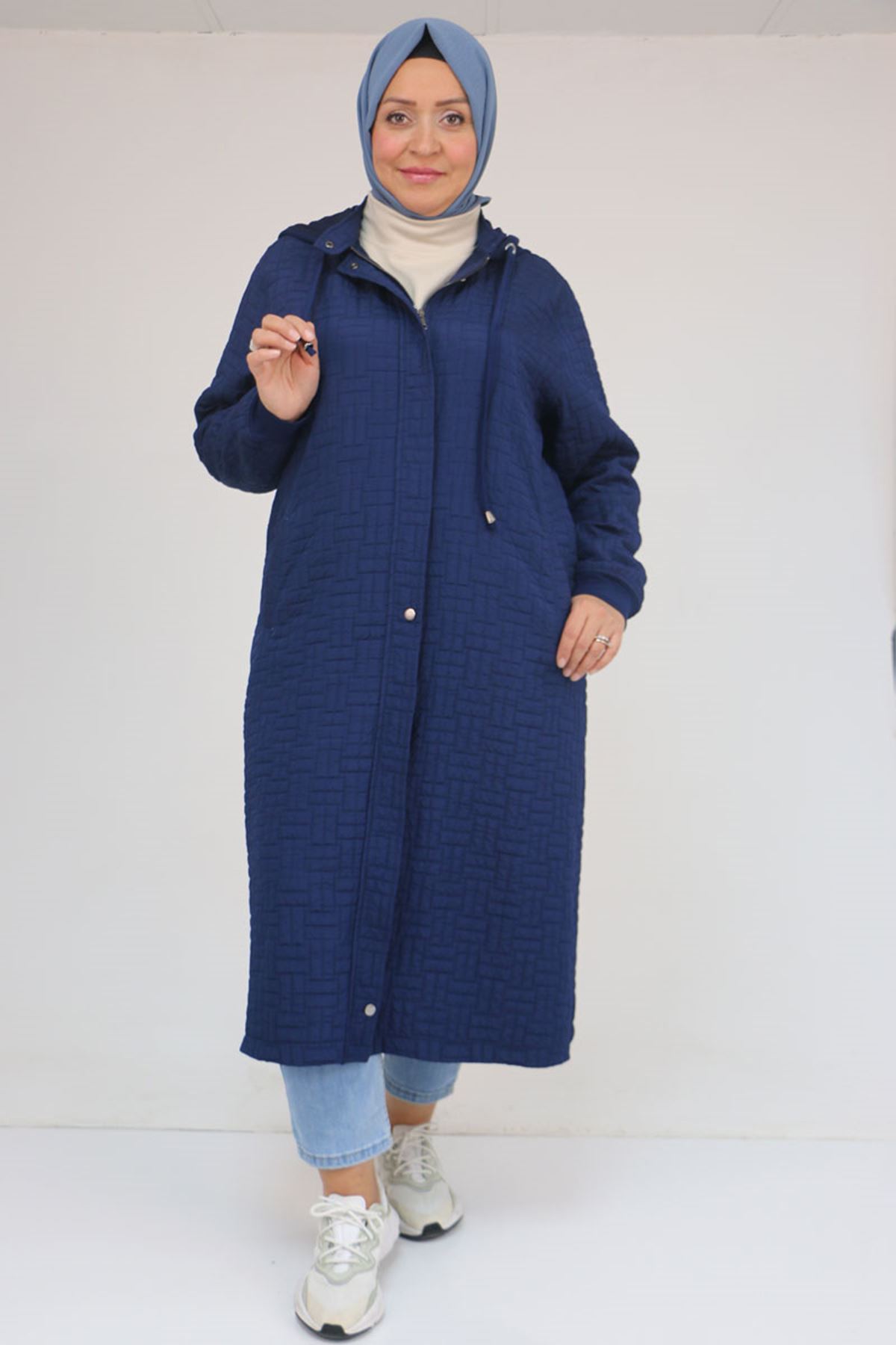 D-53043 Büyük Beden Yakalı Modal-Kapitone Kap - İndigo