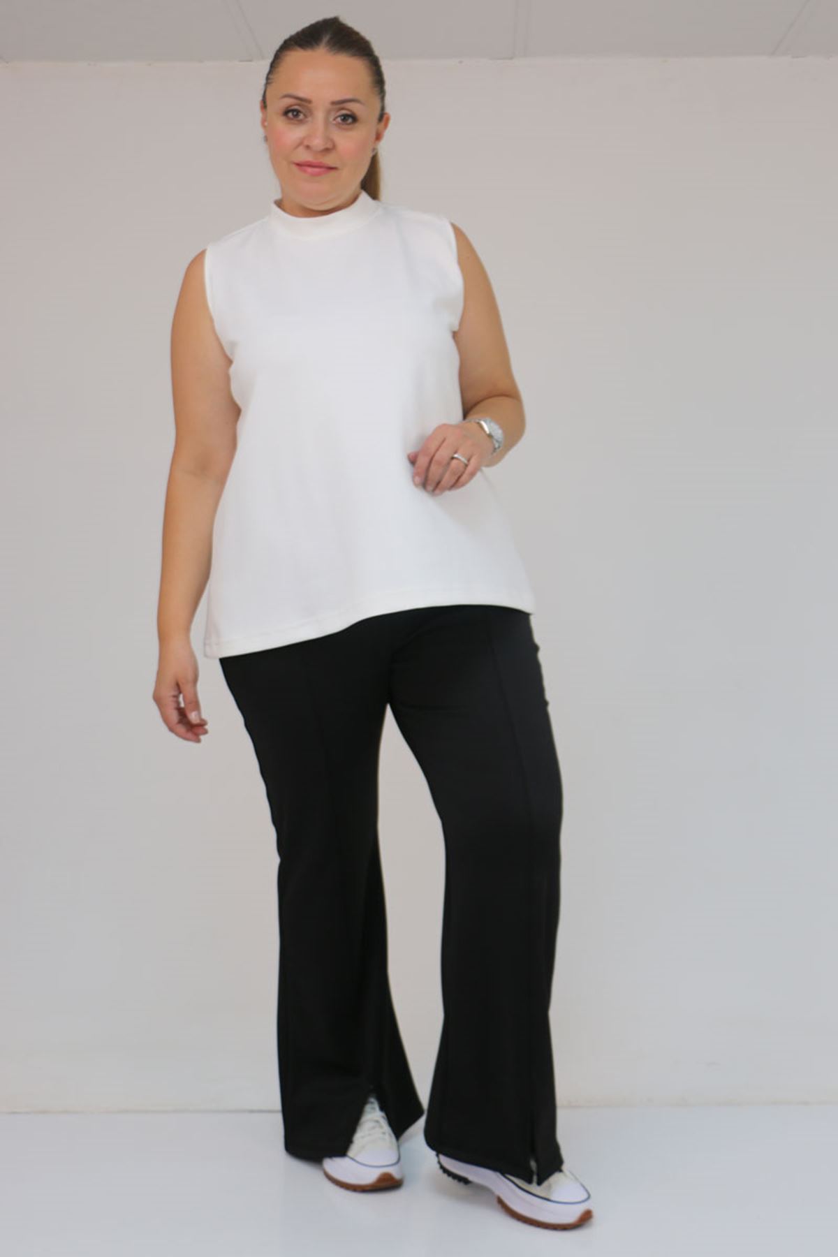 D-59506 Büyük Beden Paçası Yırtmaçlı İspanyol Paça Tayt Pantolon - Siyah